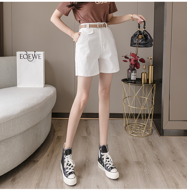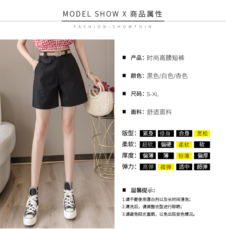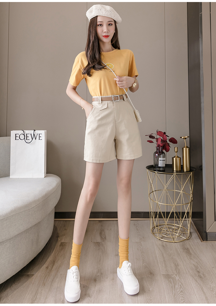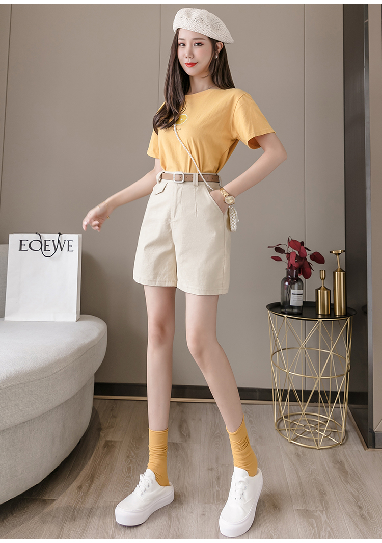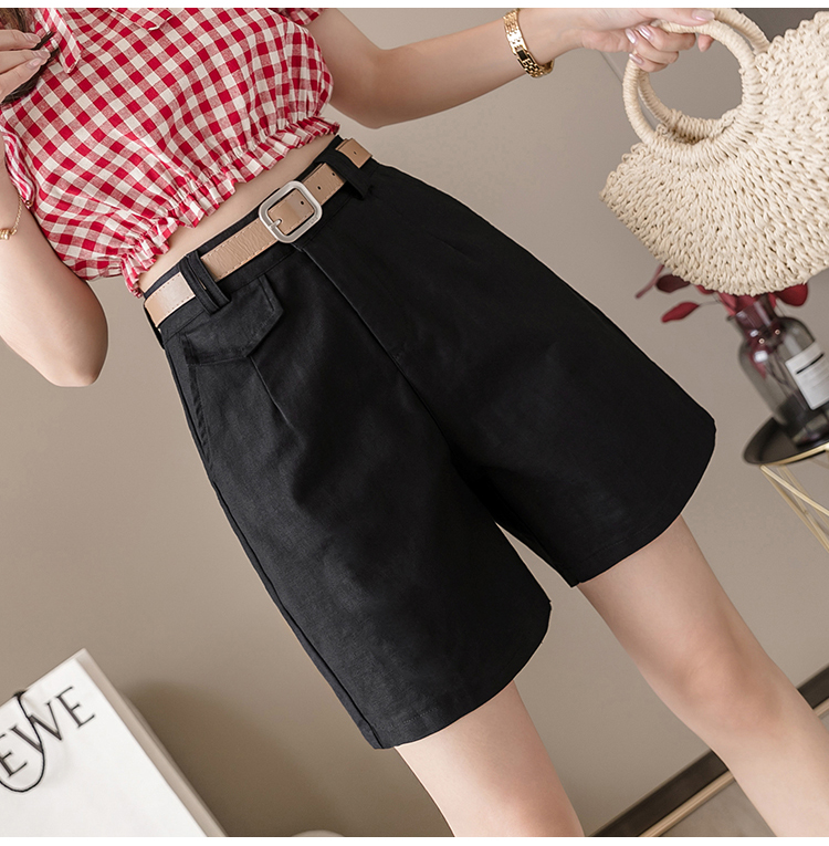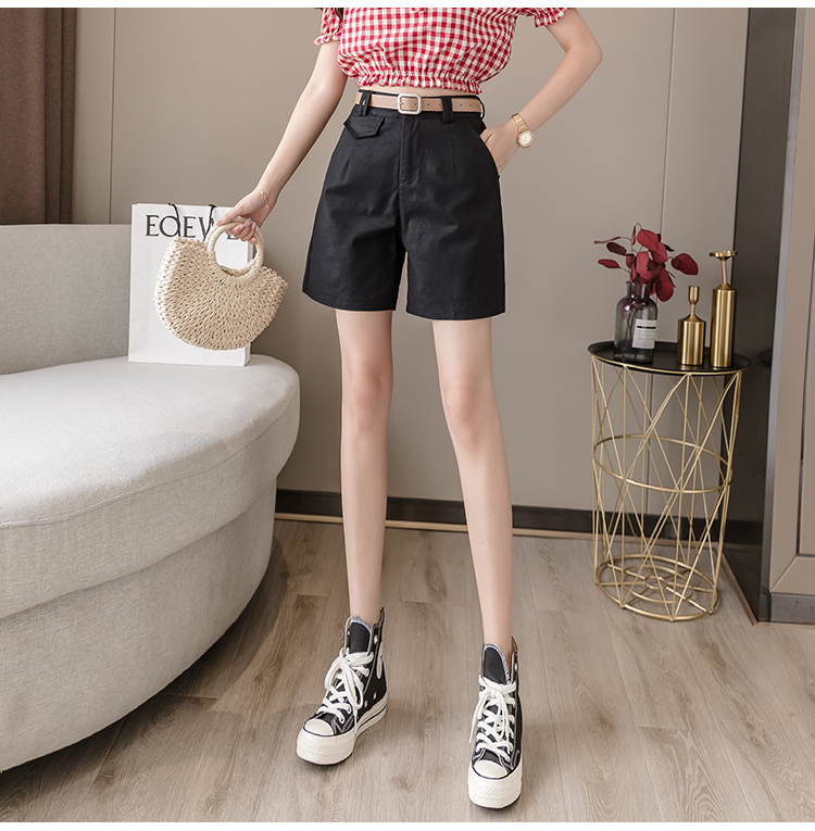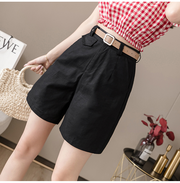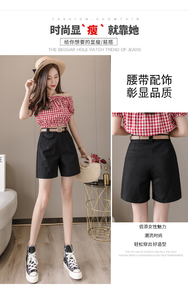 RM14314#夏季新款高腰弹力五分裤显瘦阔腿休闲中裤女直筒热裤短工装裤