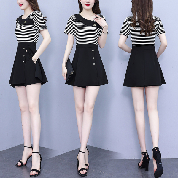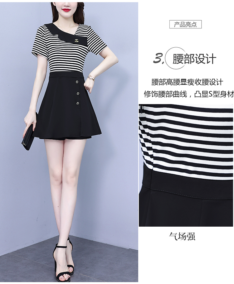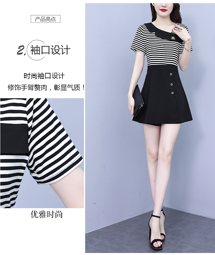 RM14496#夏季新款韩版气质减龄时尚休闲拼接上衣+短裤两件套套装