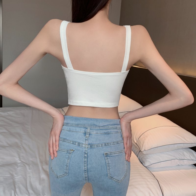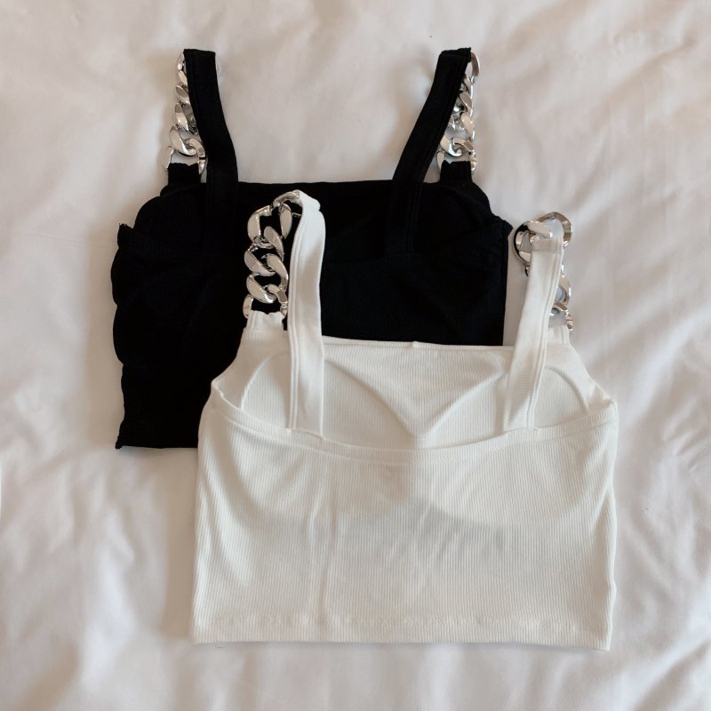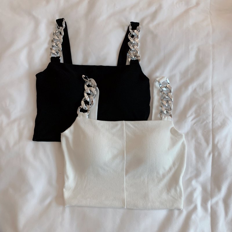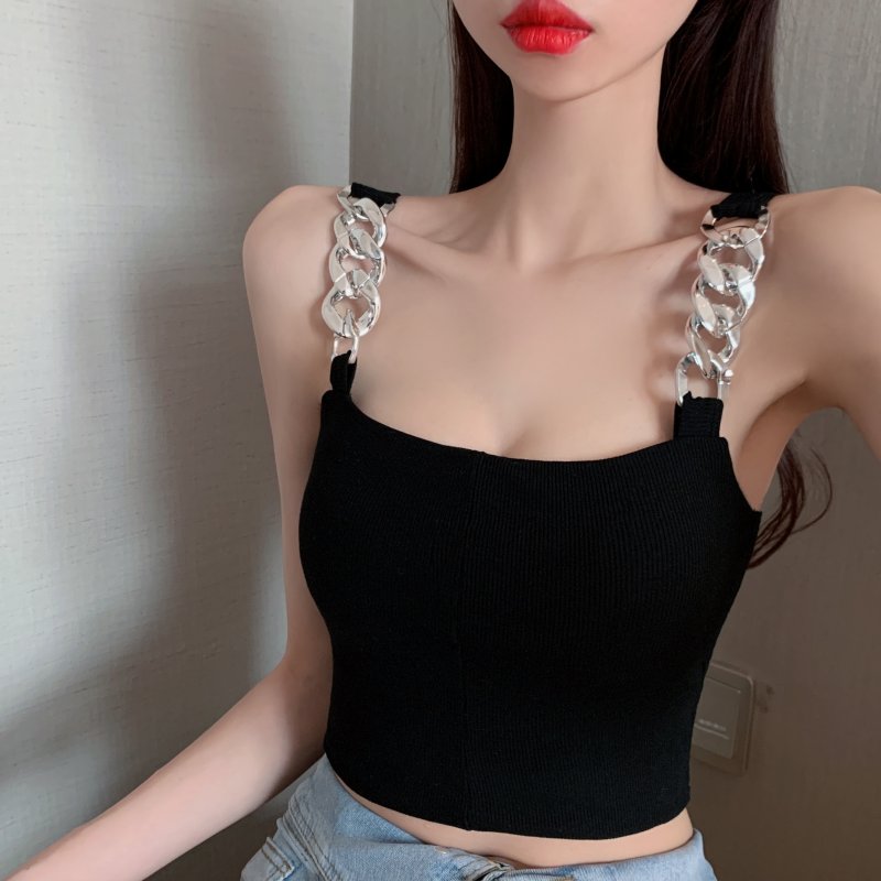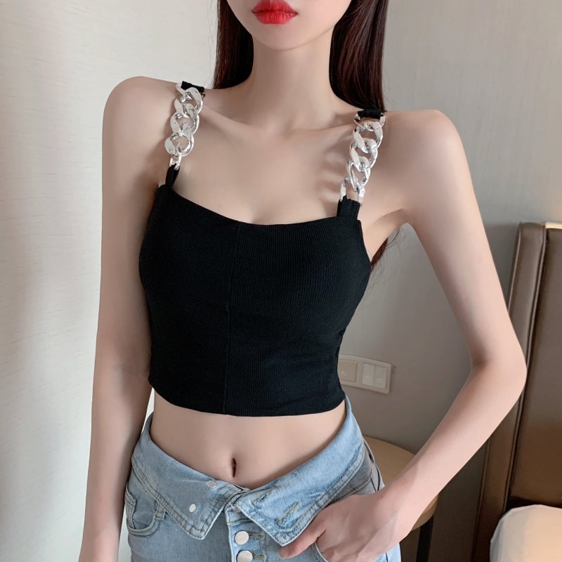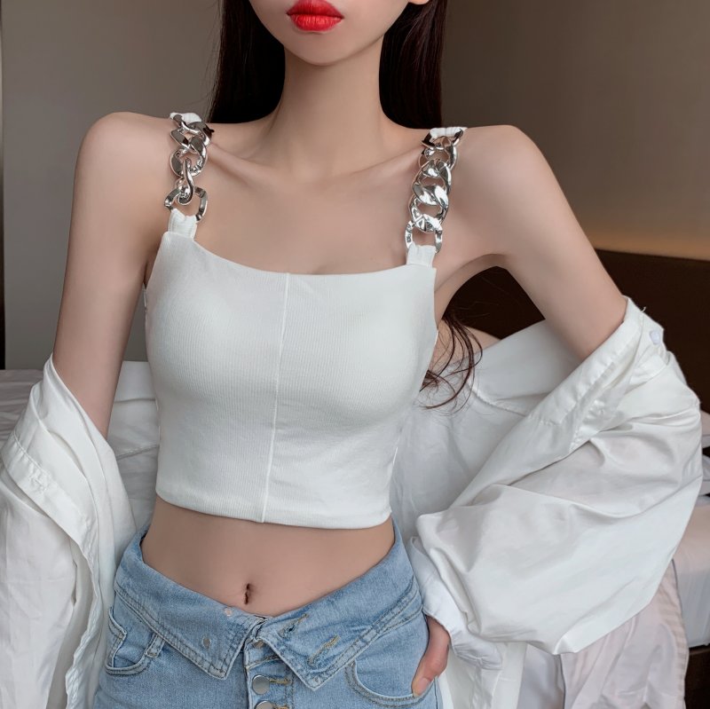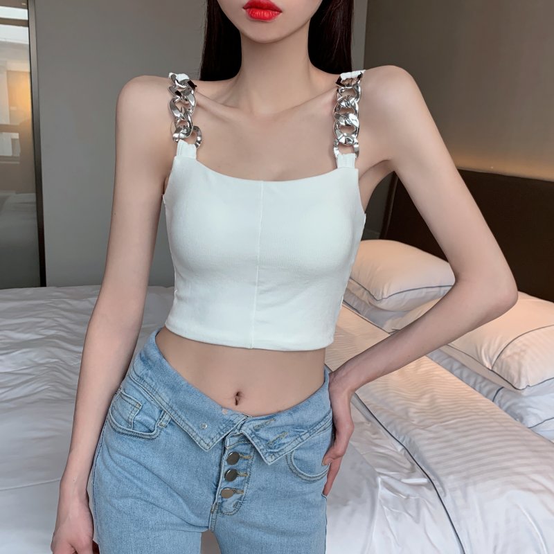 RY1581#金属大链条美背吊带背心女短款打底上衣夏季