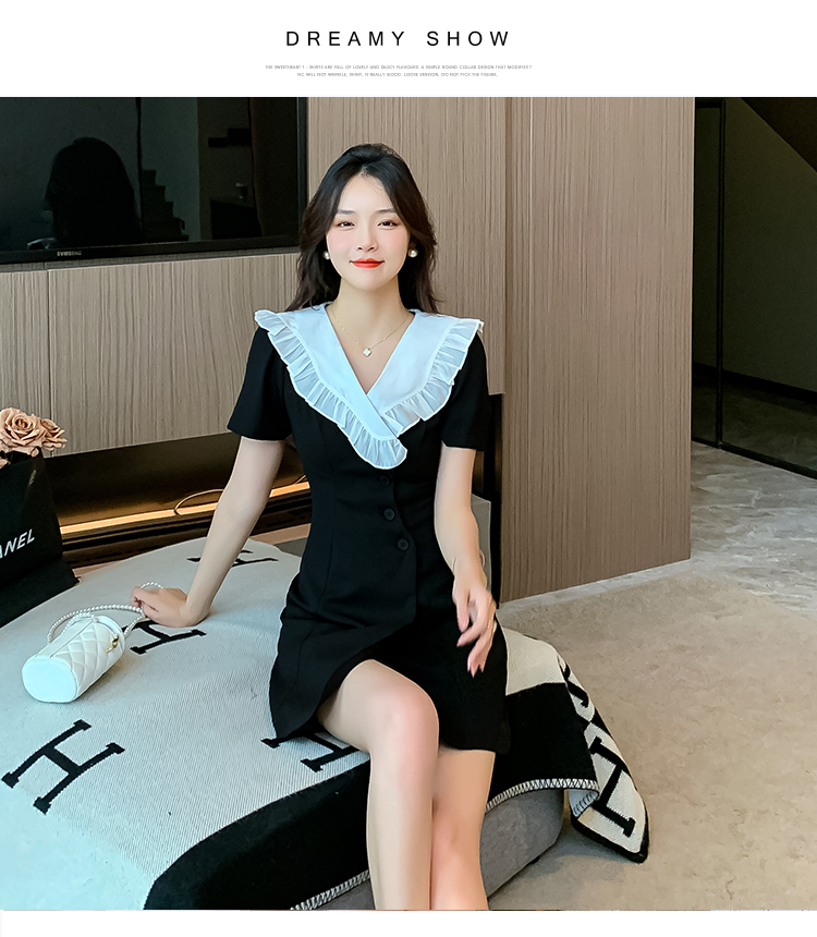 RM15015#连衣裙女夏季法式复古温柔荷叶边拼色设计感小众不规则连衣裙