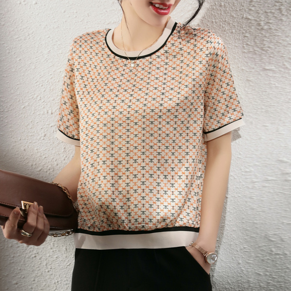 RM15054#碎花缎面雪纺衫短袖t恤女装上衣爆款