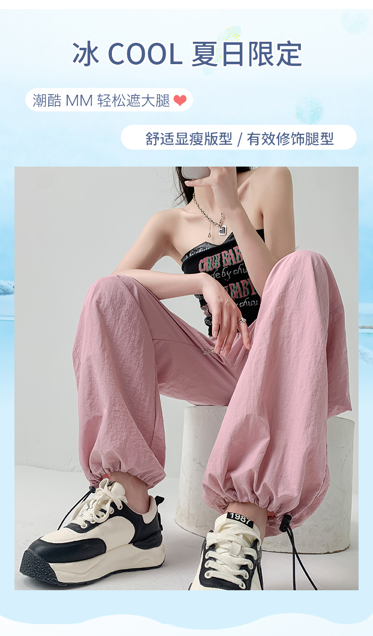 RM15098#美式复古速干工装裤女2023夏季薄款小个子抽绳束脚两穿休闲阔腿裤