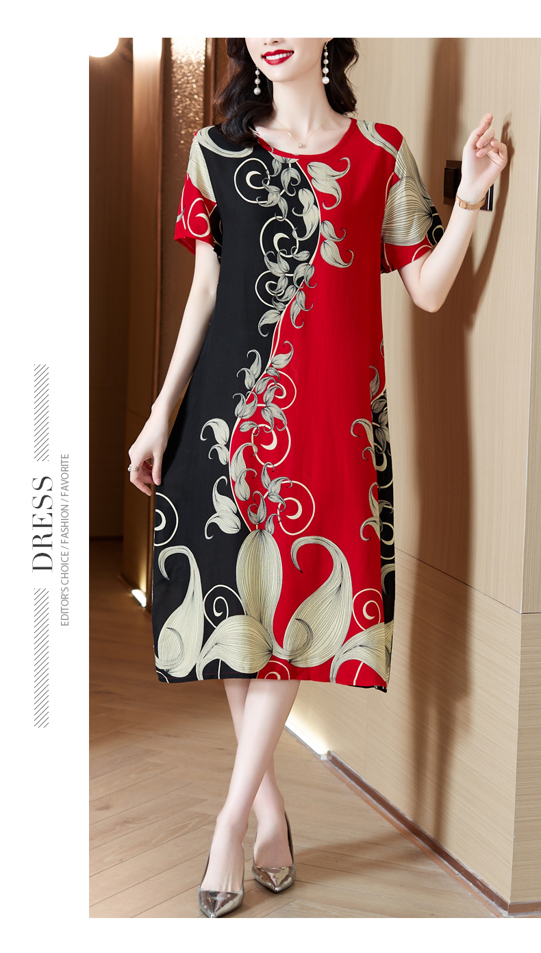 RM15112#夏季文艺棉长款连衣裙圆领大码胖MM波西米亚风旅游袍子