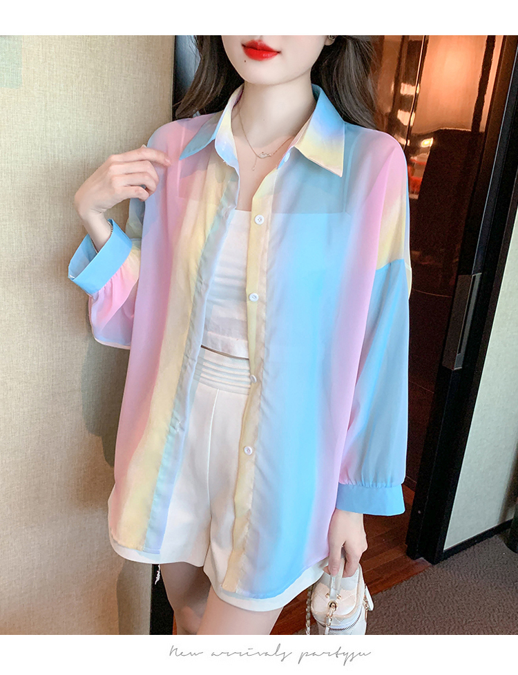 RM15126#夏季新款彩虹晕染薄款防晒衬衫防紫外线上衣外套女