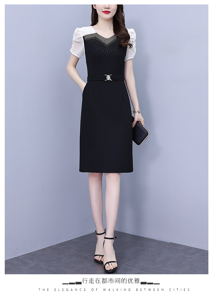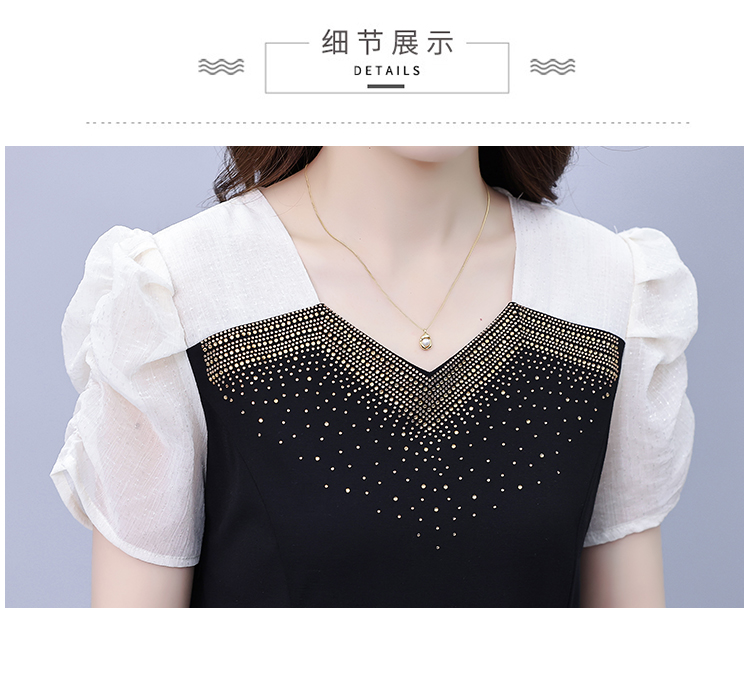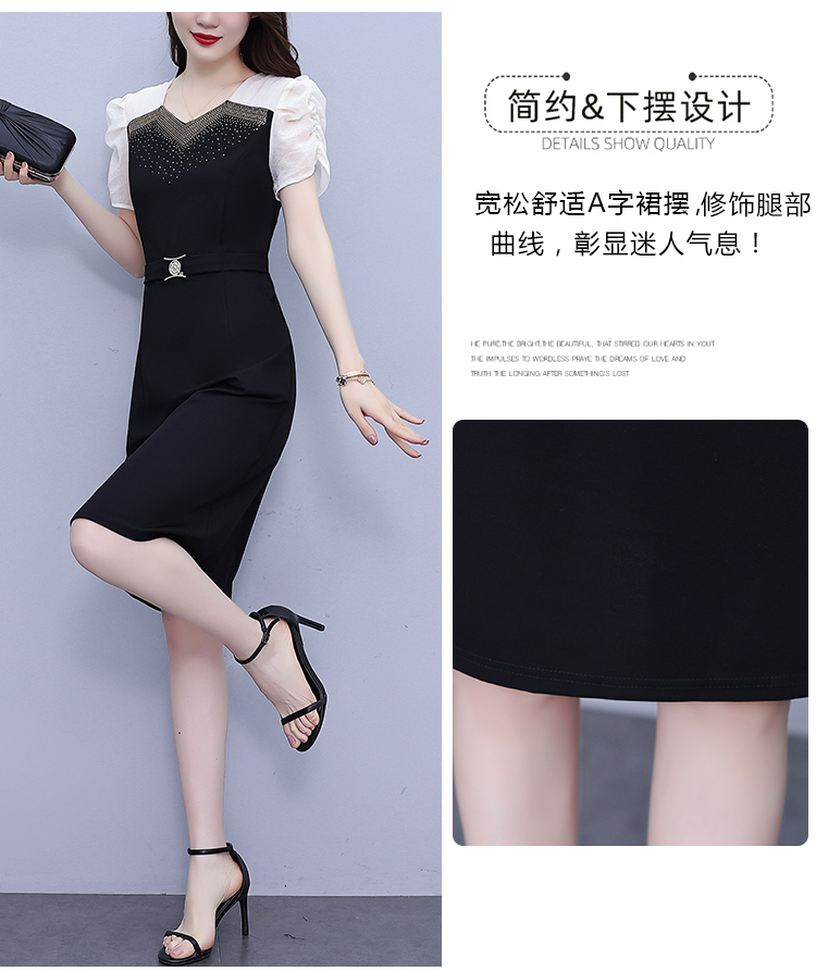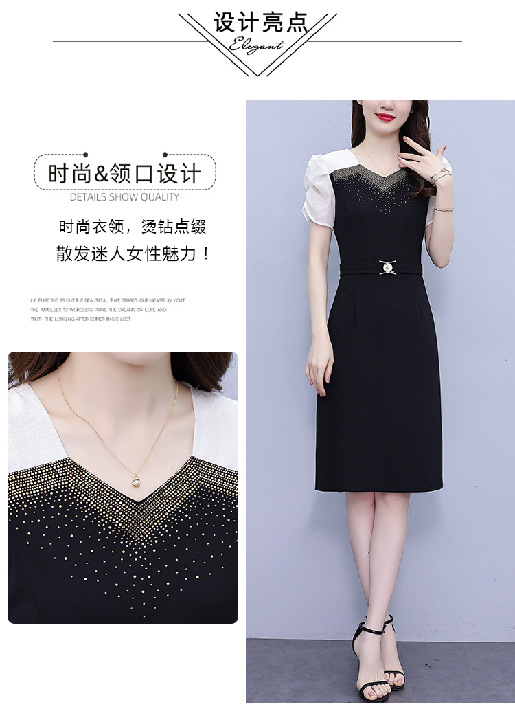 RM15321#大码女装2023夏抖音爆款气质雪纺拼接烫钻假两件连衣裙女