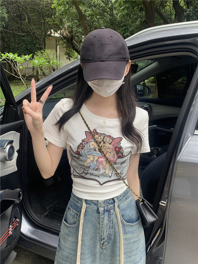 RM15470#夏季新款重工刺绣圆领系带短袖T恤上衣