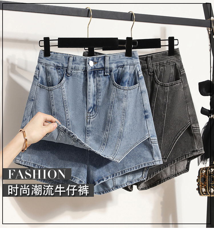 RM15493#高腰牛仔裙裤女秋季性感水洗A字牛仔短裤裙裤大码胖mm假两件
