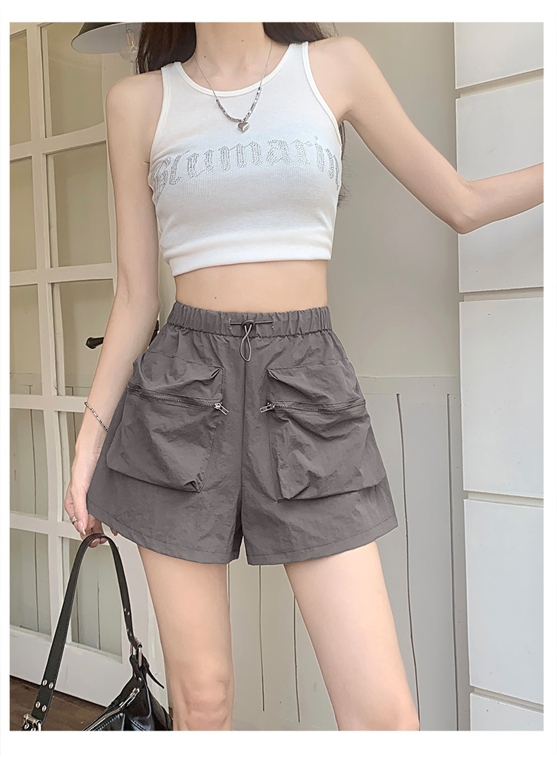 RM15610#速干美式口袋工装短裤女夏季薄款松紧腰休闲裤显瘦运动阔腿裤