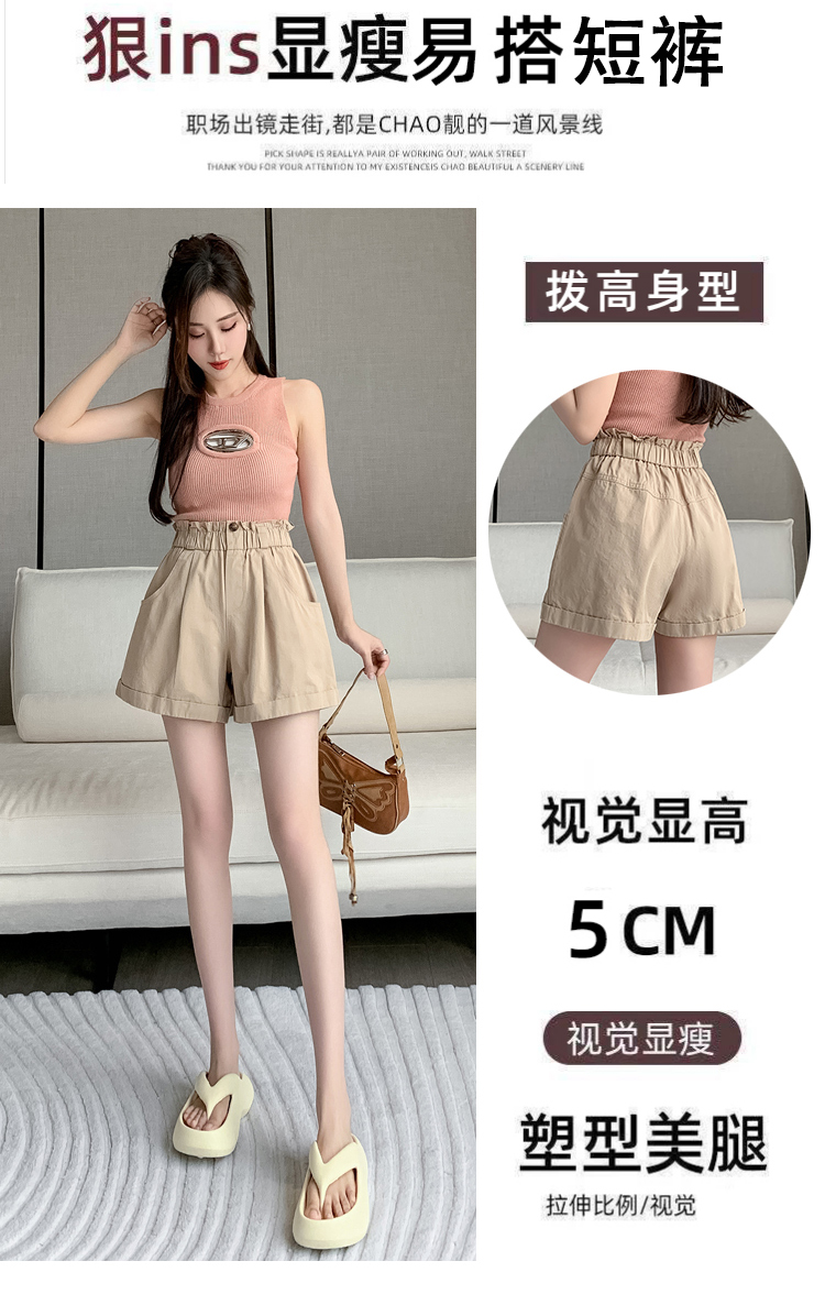 RM15620#夏季百搭洗水棉休闲短裤女高腰显瘦阔腿裤花苞腰A字裤