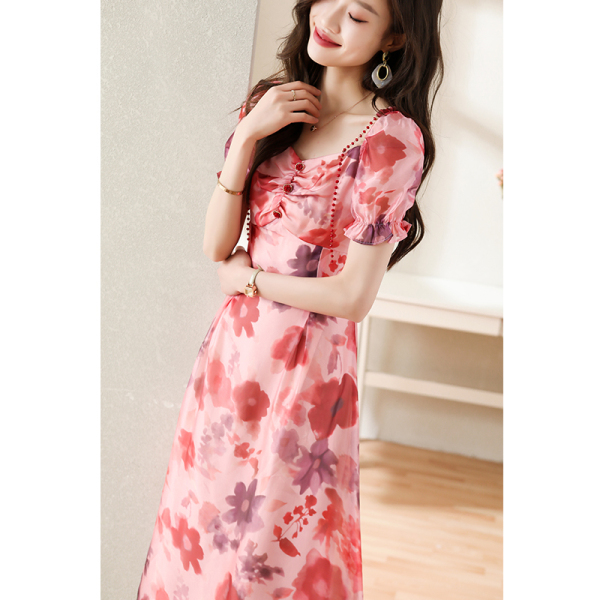 RM15643#纯欲辣妹连衣裙甜美夏季新款少女设计感方领碎花连衣裙长裙仙