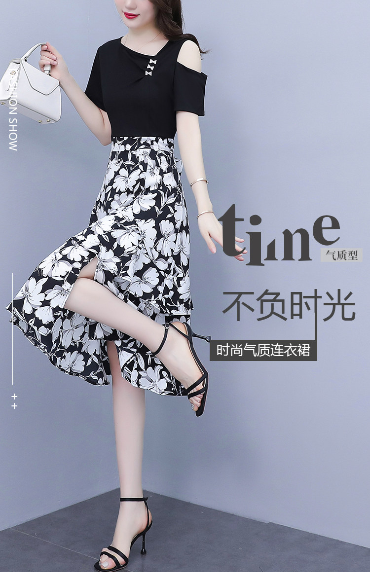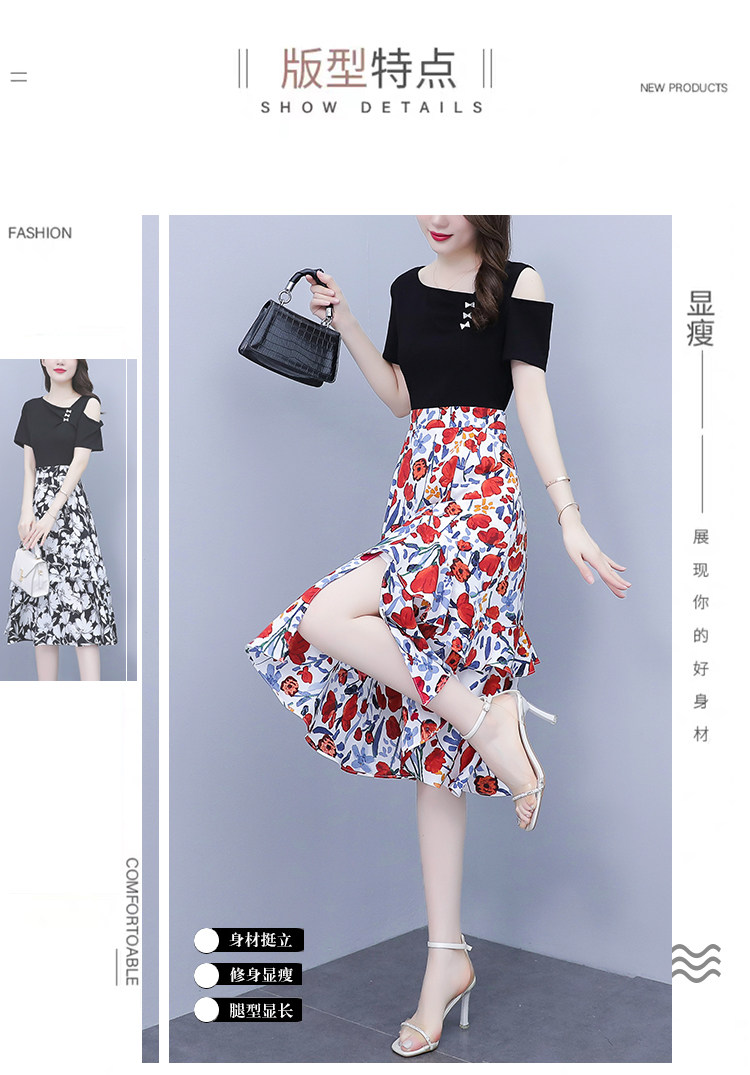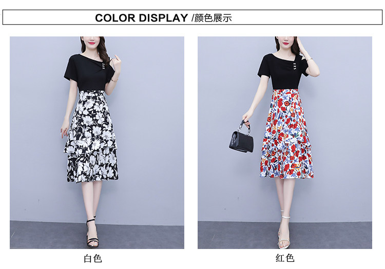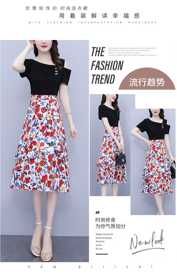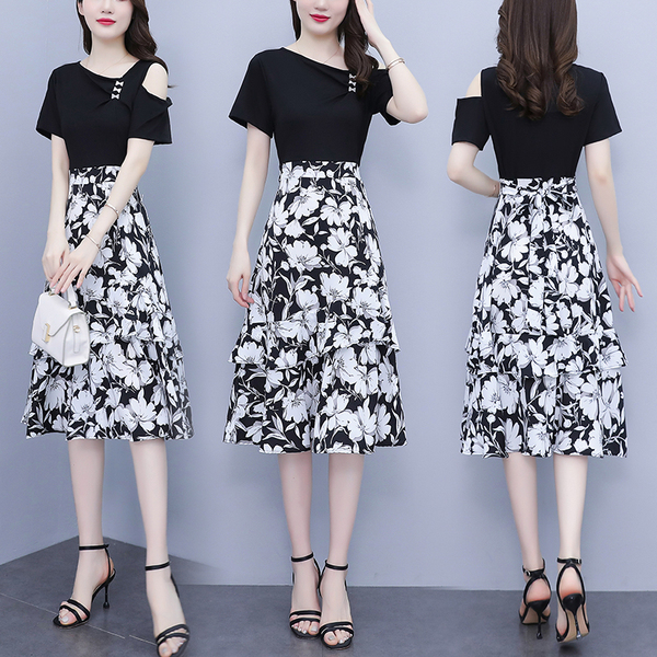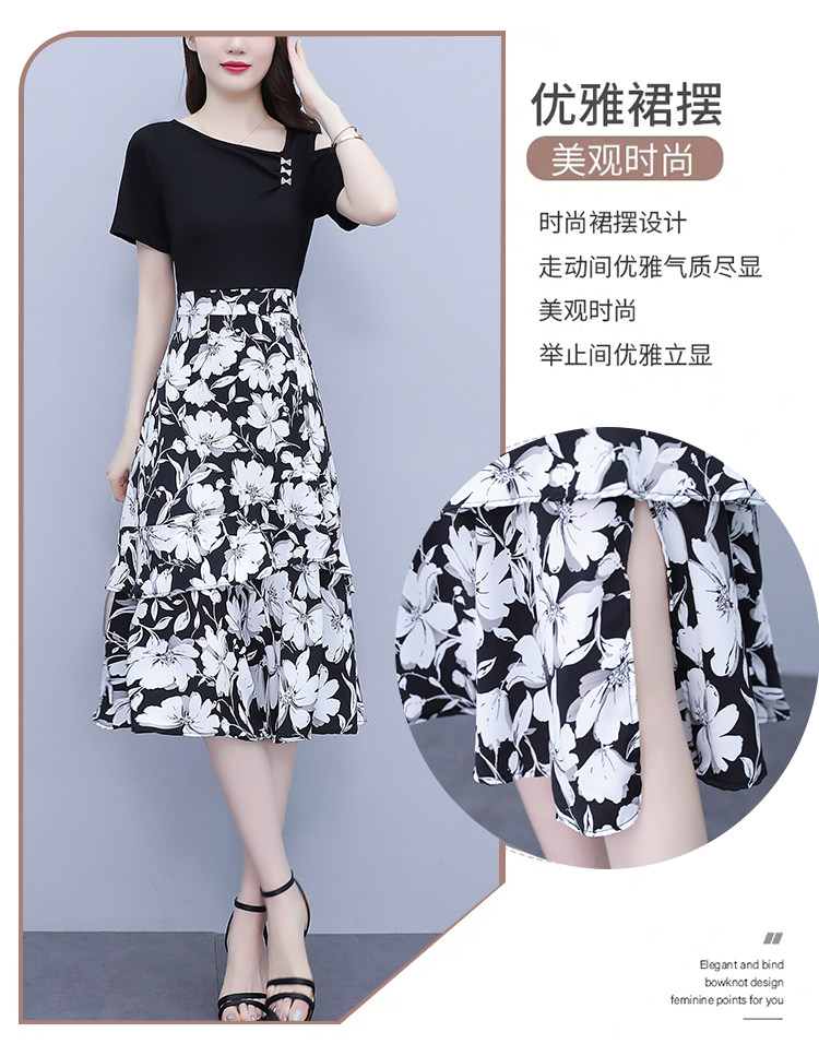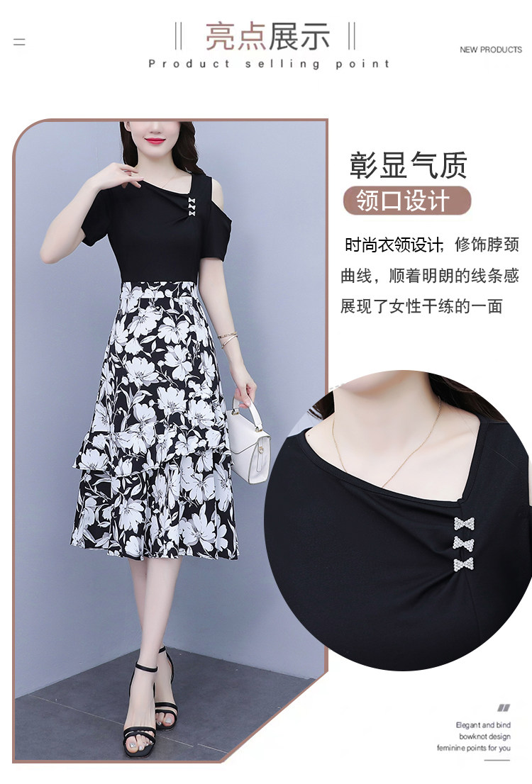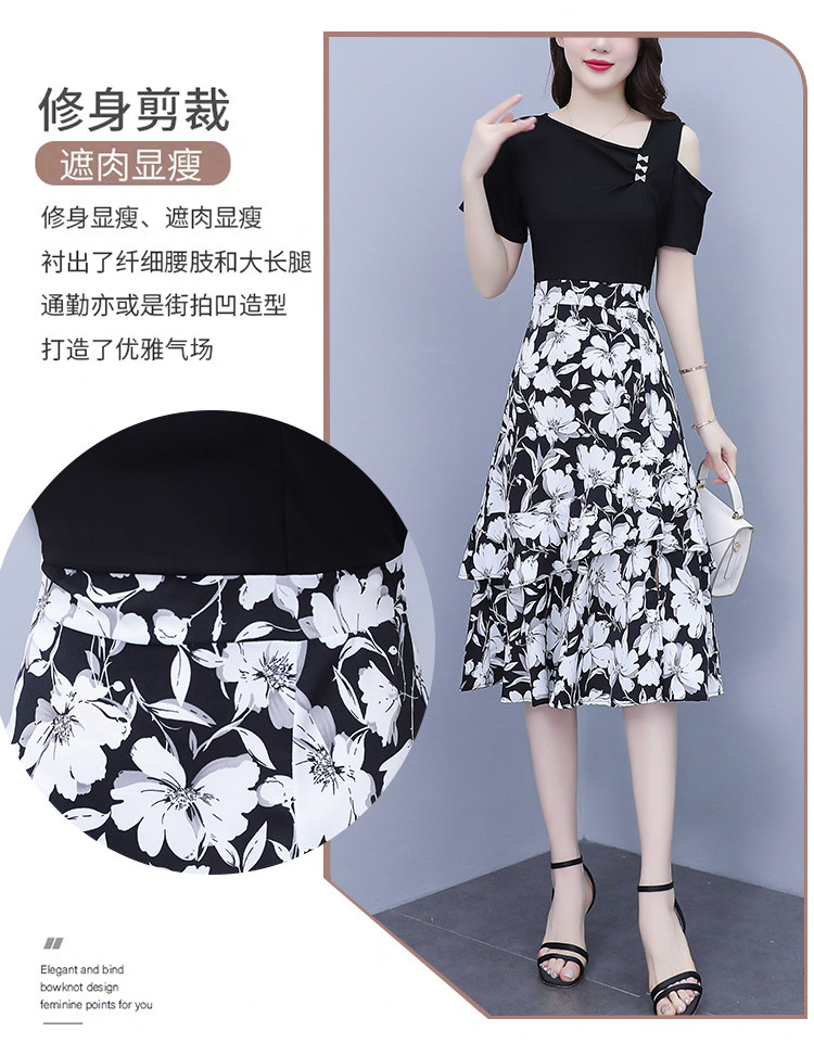 RM15775#夏季新款修身显瘦气质假两件碎花典雅花朵时尚遮肉连衣裙