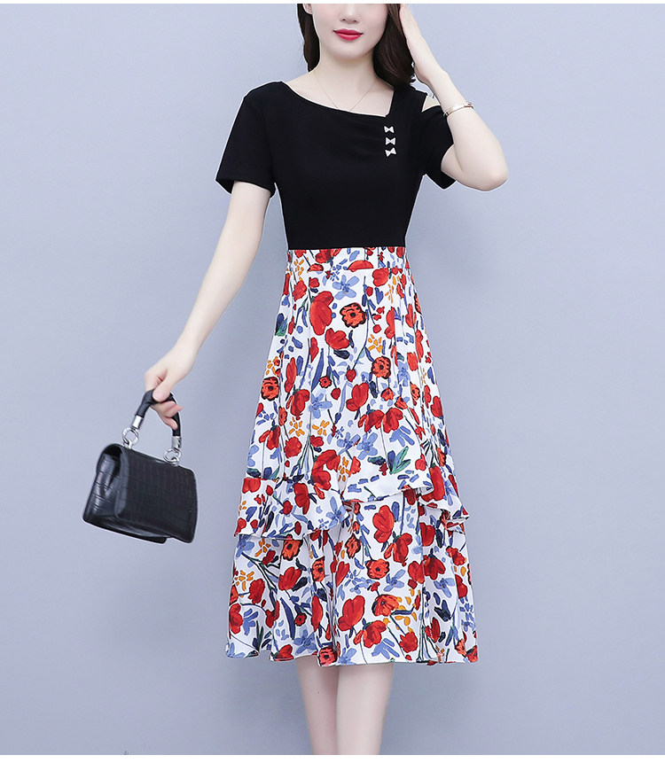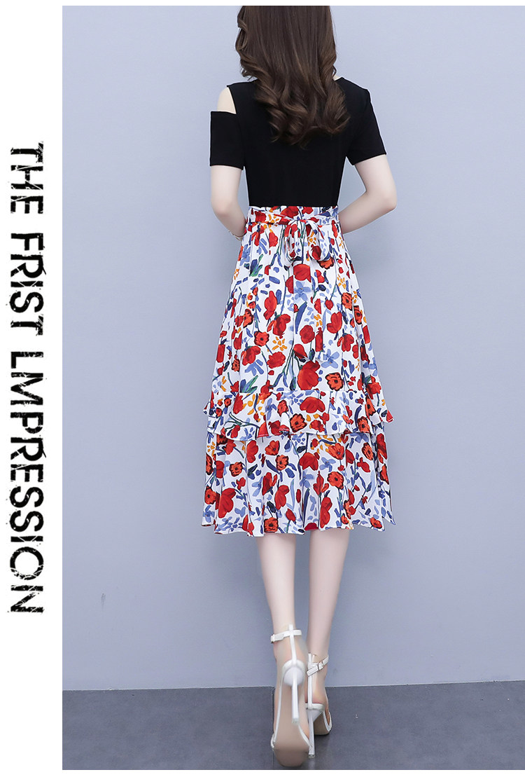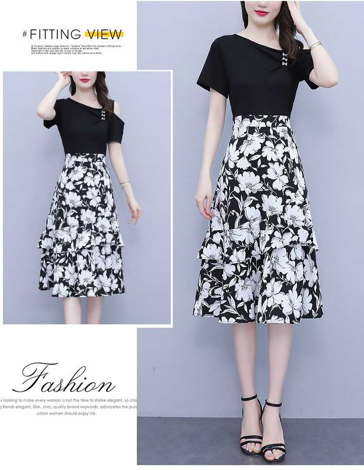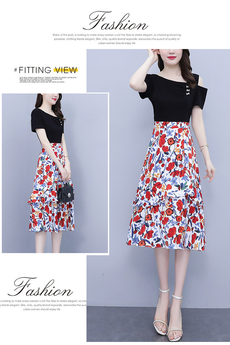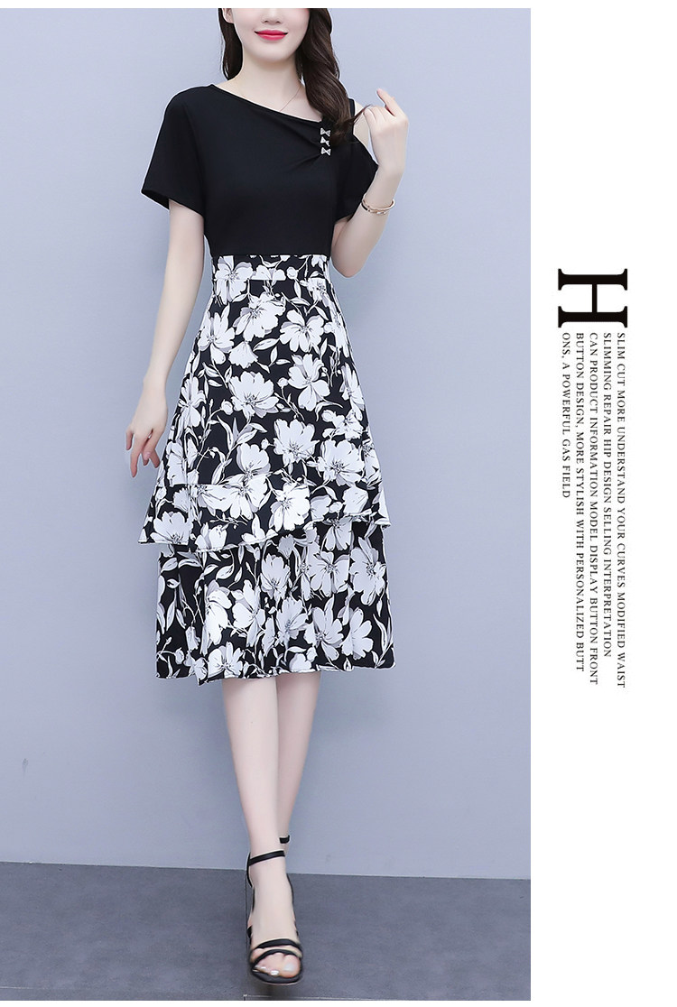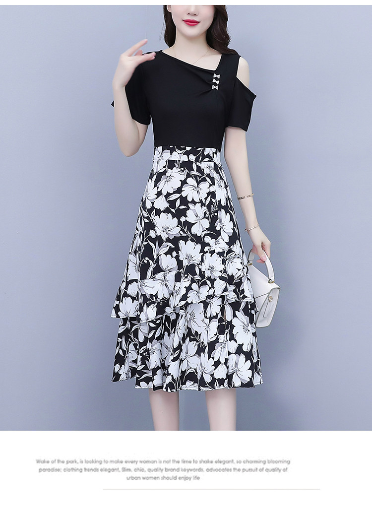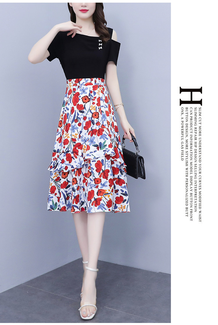 RM15775#夏季新款修身显瘦气质假两件碎花典雅花朵时尚遮肉连衣裙