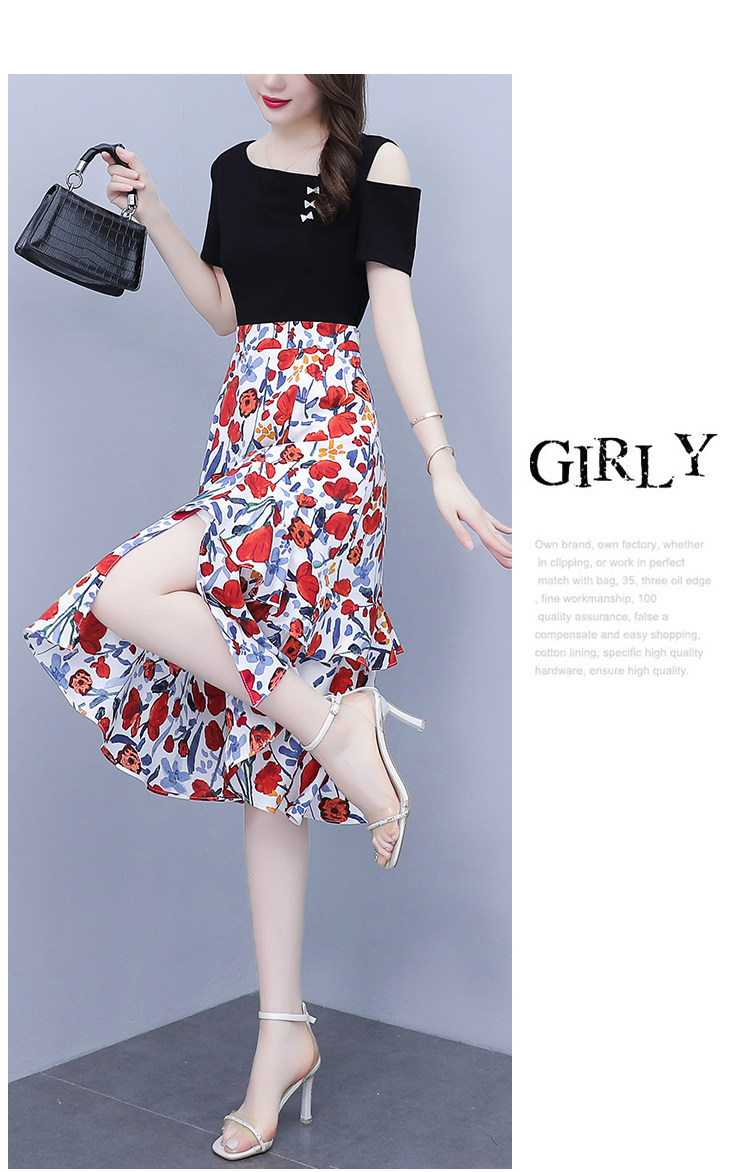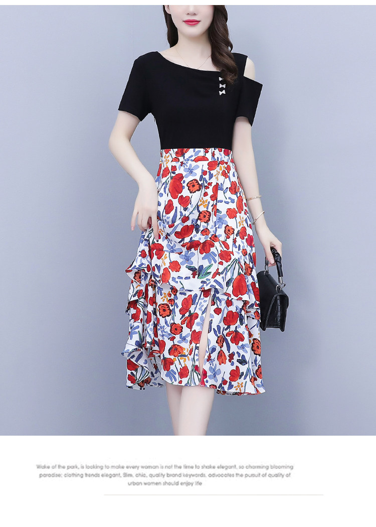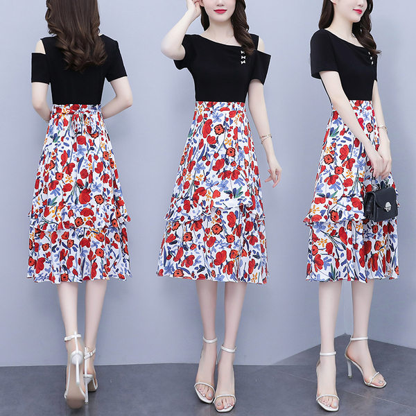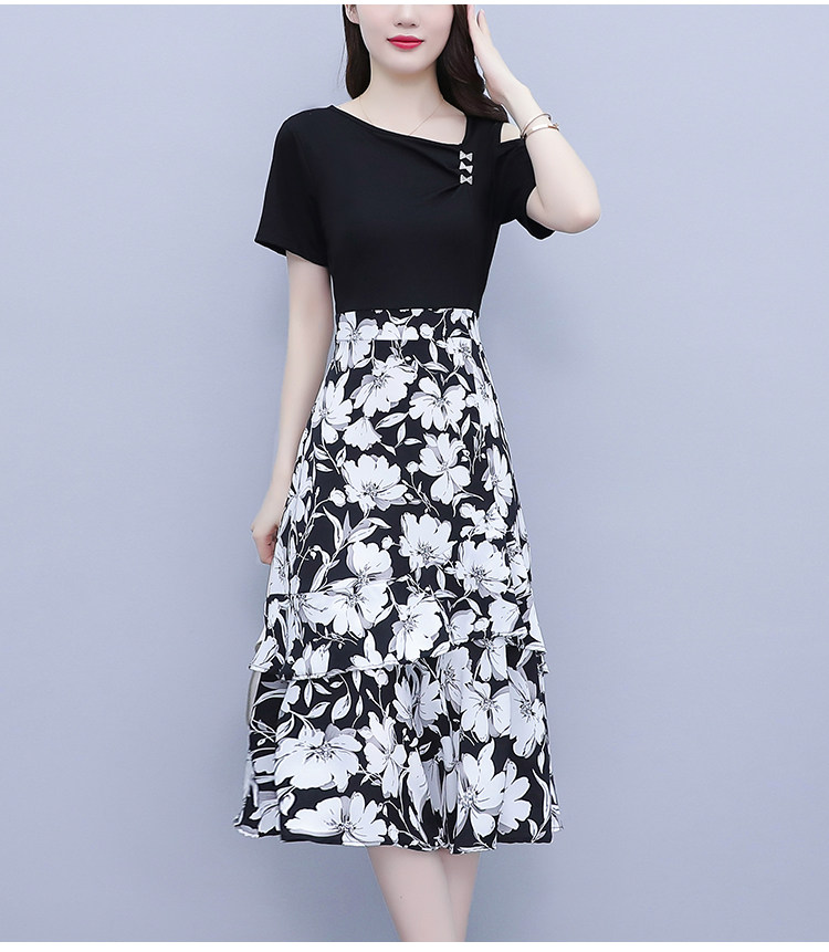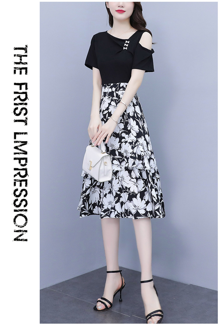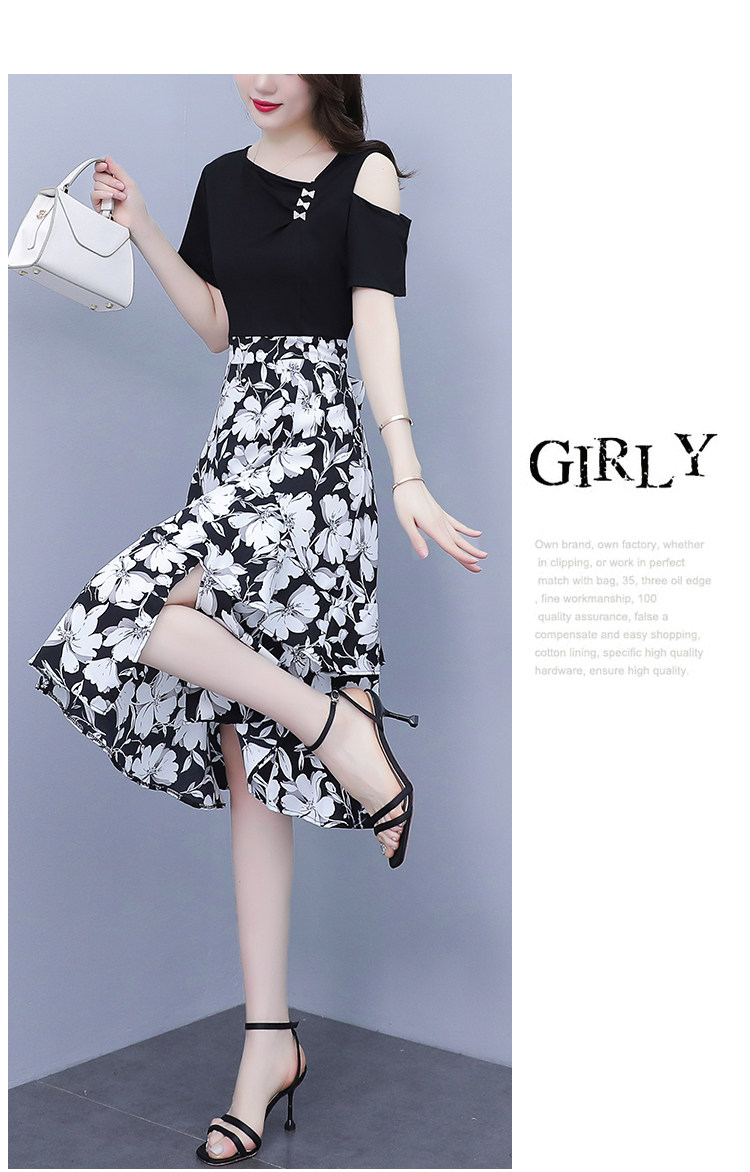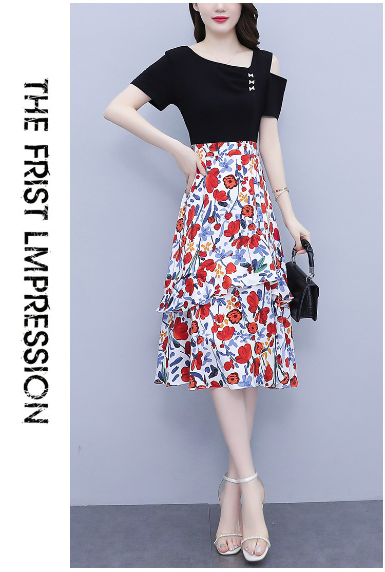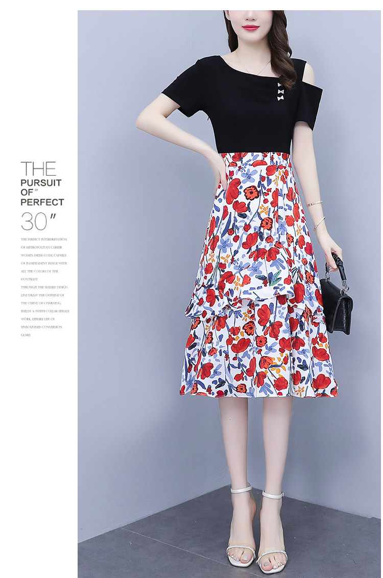RM15775#夏季新款修身显瘦气质假两件碎花典雅花朵时尚遮肉连衣裙