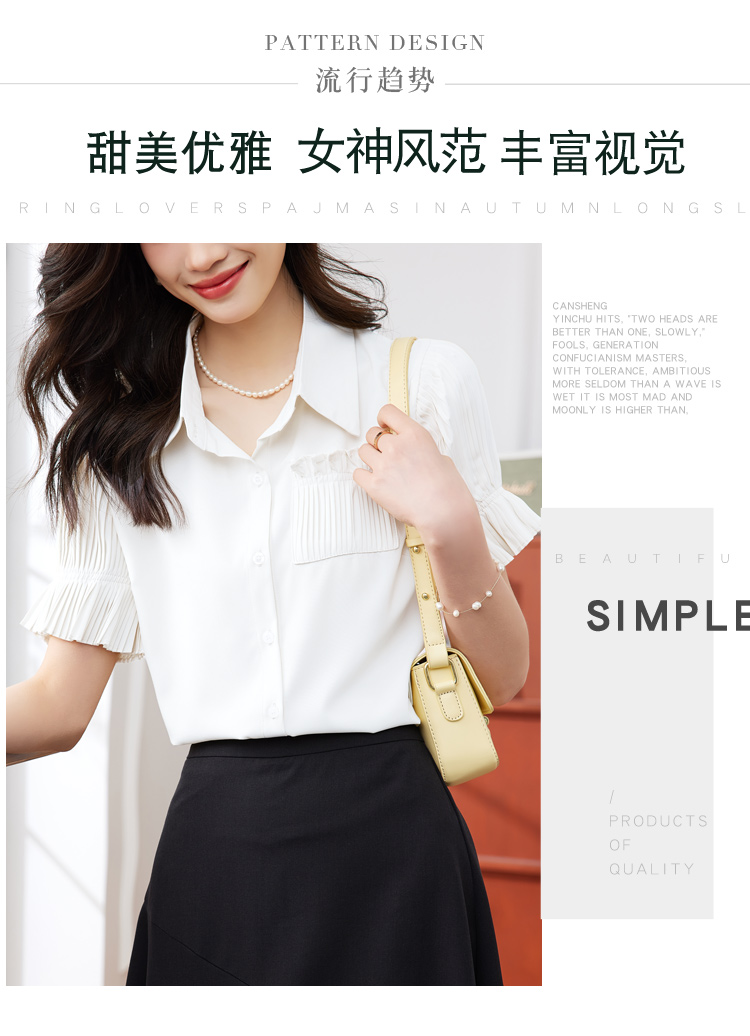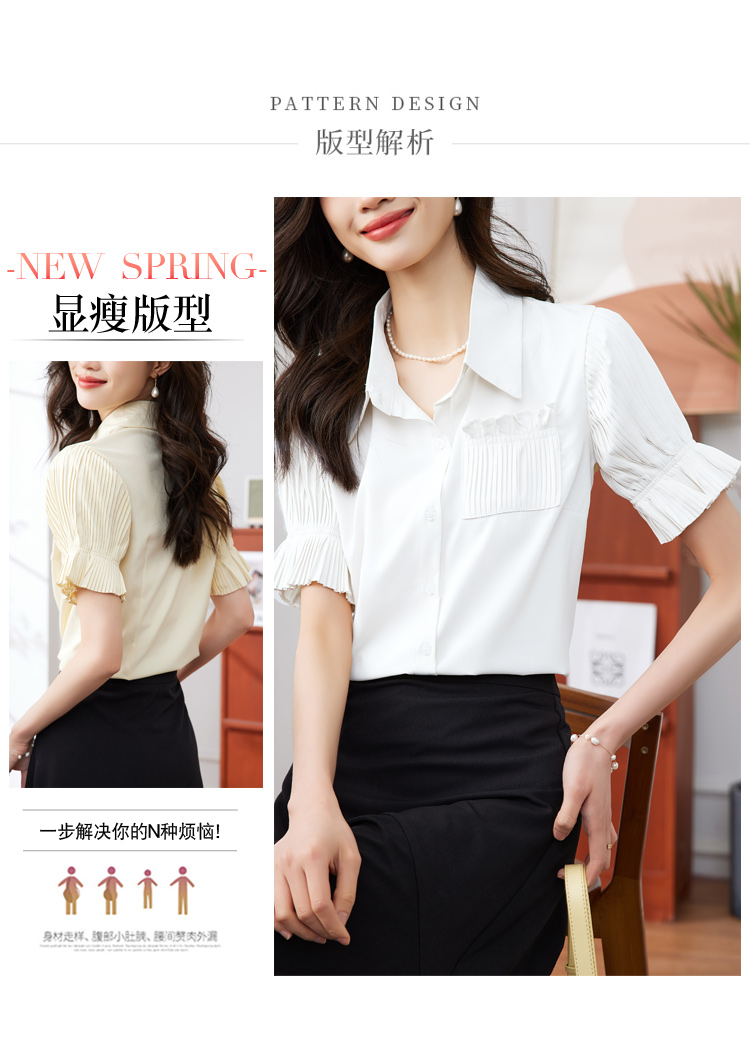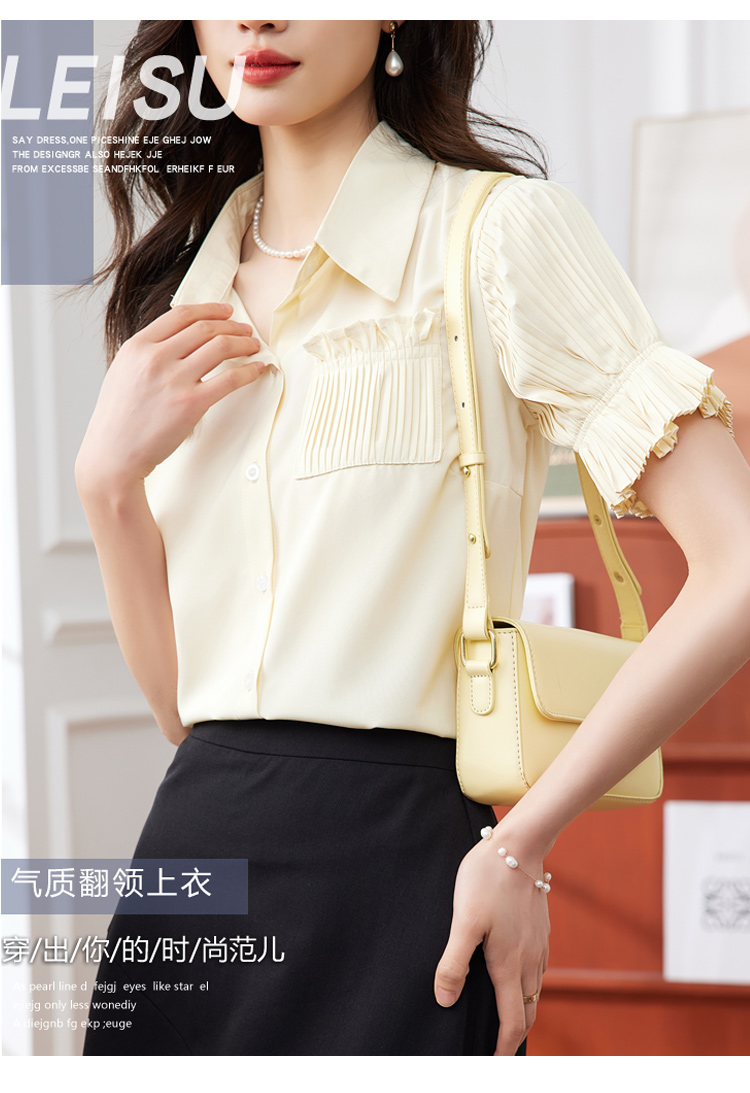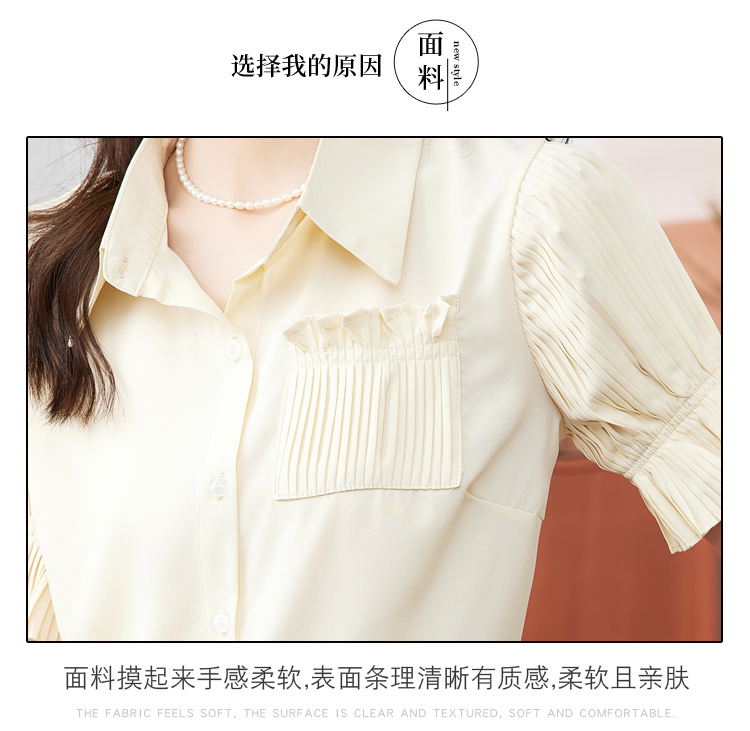 RM15804#夏季新款韩版气质压褶小心机雪纺灯笼袖衬衫上衣女