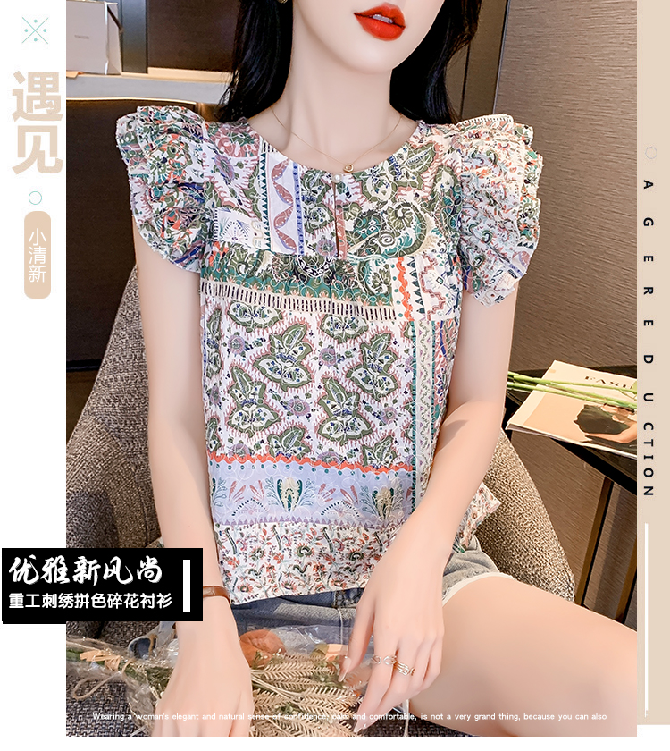 RM15878#夏季新品复古洋气荷叶边飞飞袖木耳边短衬衫女潮