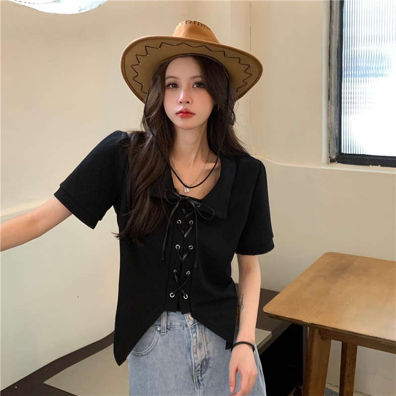 RM15897#夏季甜辣风polp领衬衫设计感衬衣泡泡袖短款上衣
