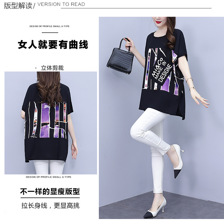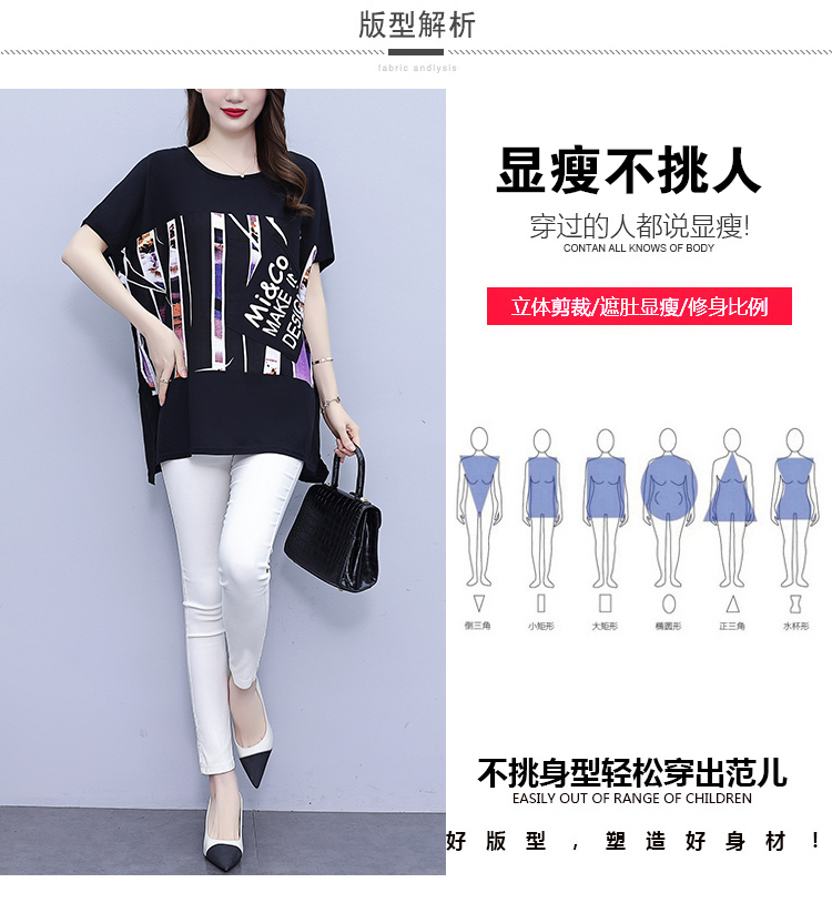 RY1606#大码女装2023夏装新款胖妹妹休闲拼接时尚洋气T恤遮肚子显瘦小衫