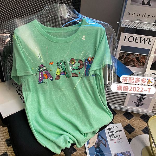 RM16098#白色T恤女印花短袖2022年春夏修身显瘦百搭网红ins潮洋气半袖上衣