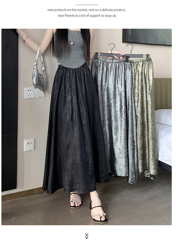 RM16112#复古风金属感半身裙女2023夏新款高腰垂感亮闪中长A字裙伞裙