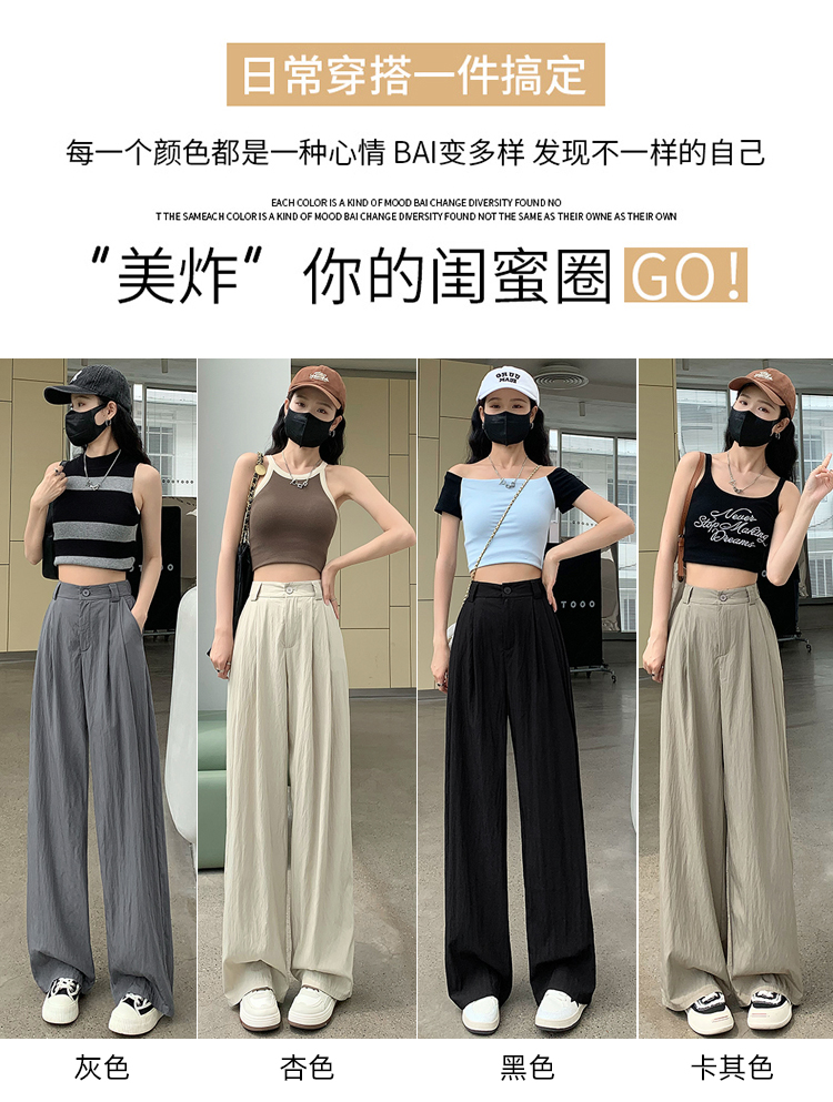 RM16114#冰丝阔腿裤女夏季高腰垂感休闲日系慵懒山本裤褶皱棉麻直筒裤