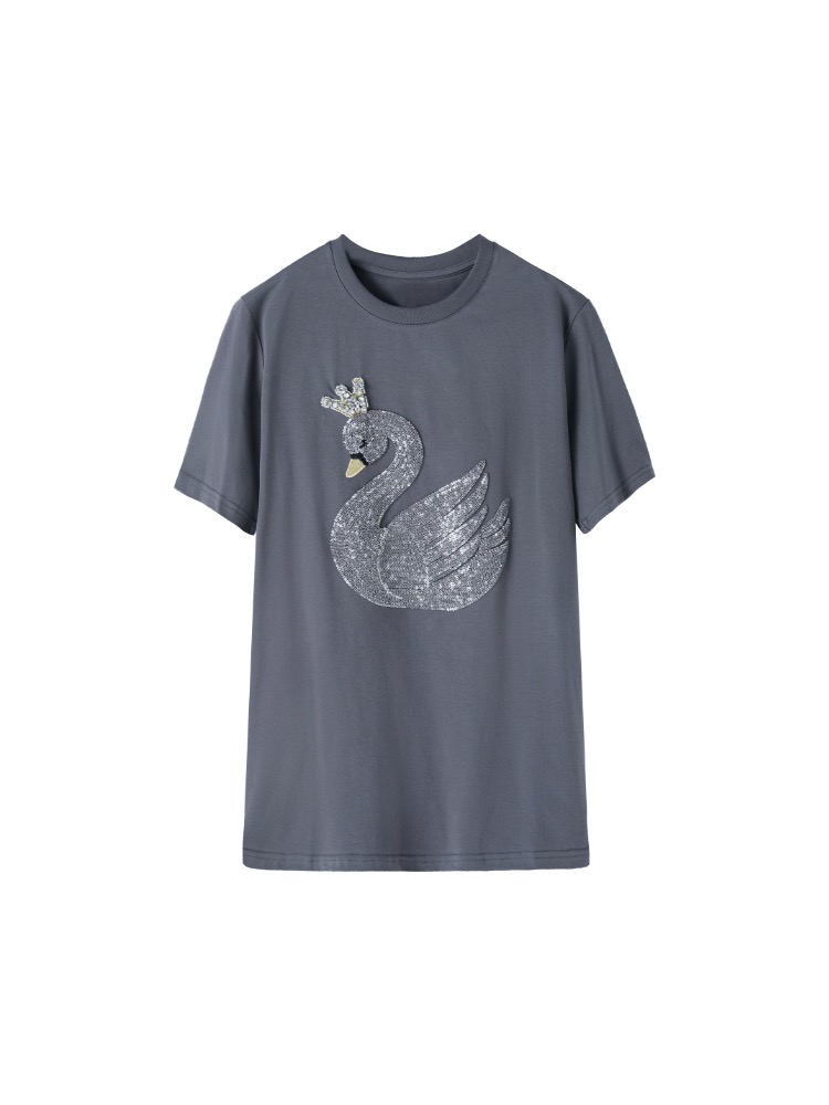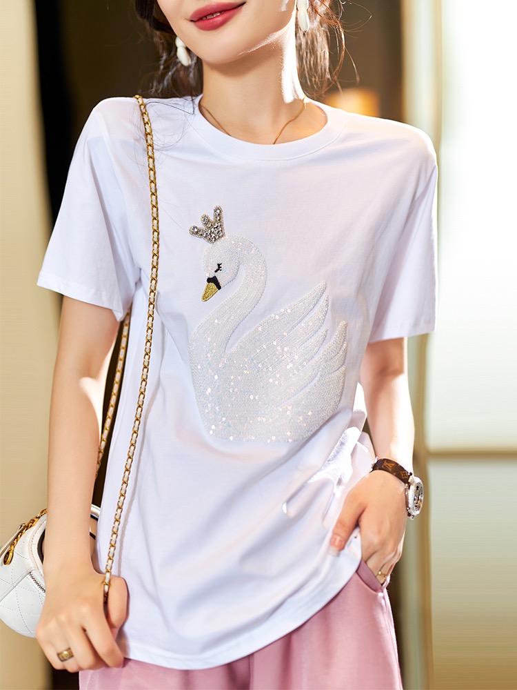 RM16200#大码女装2023新款时尚天鹅亮片T恤