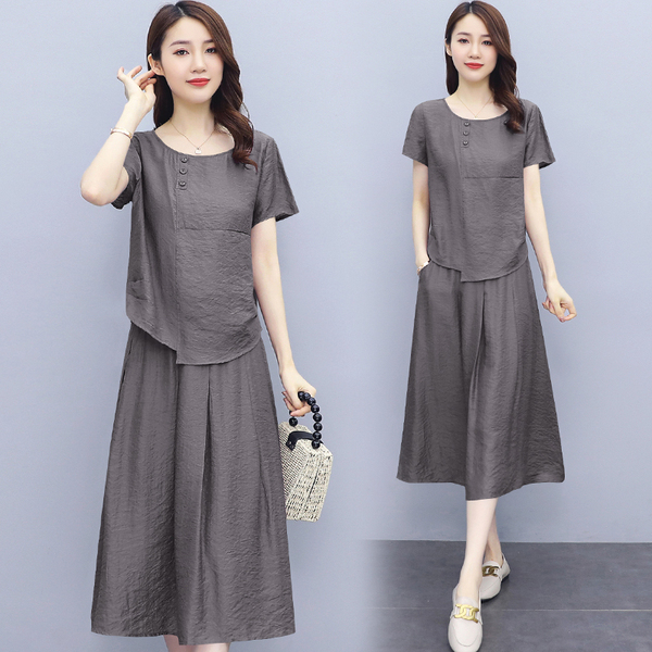 RY1616#棉麻连衣裙女夏高端气质洋气苎麻套装两件套裙子2022春