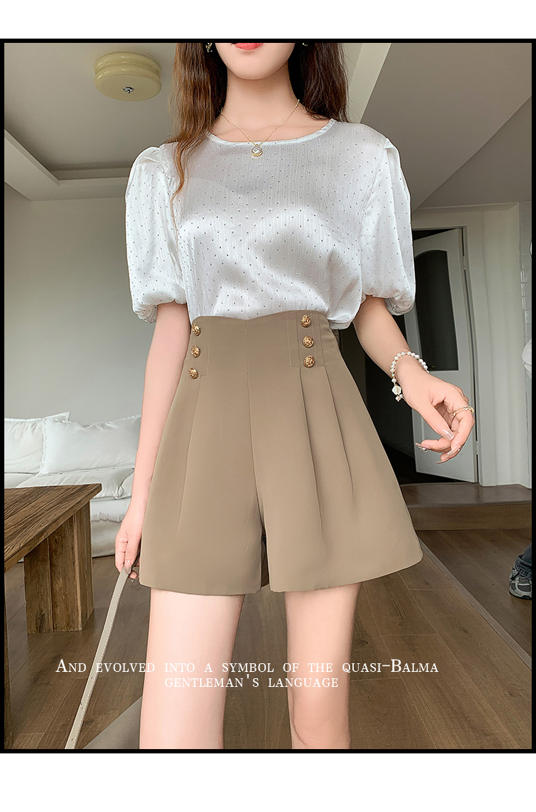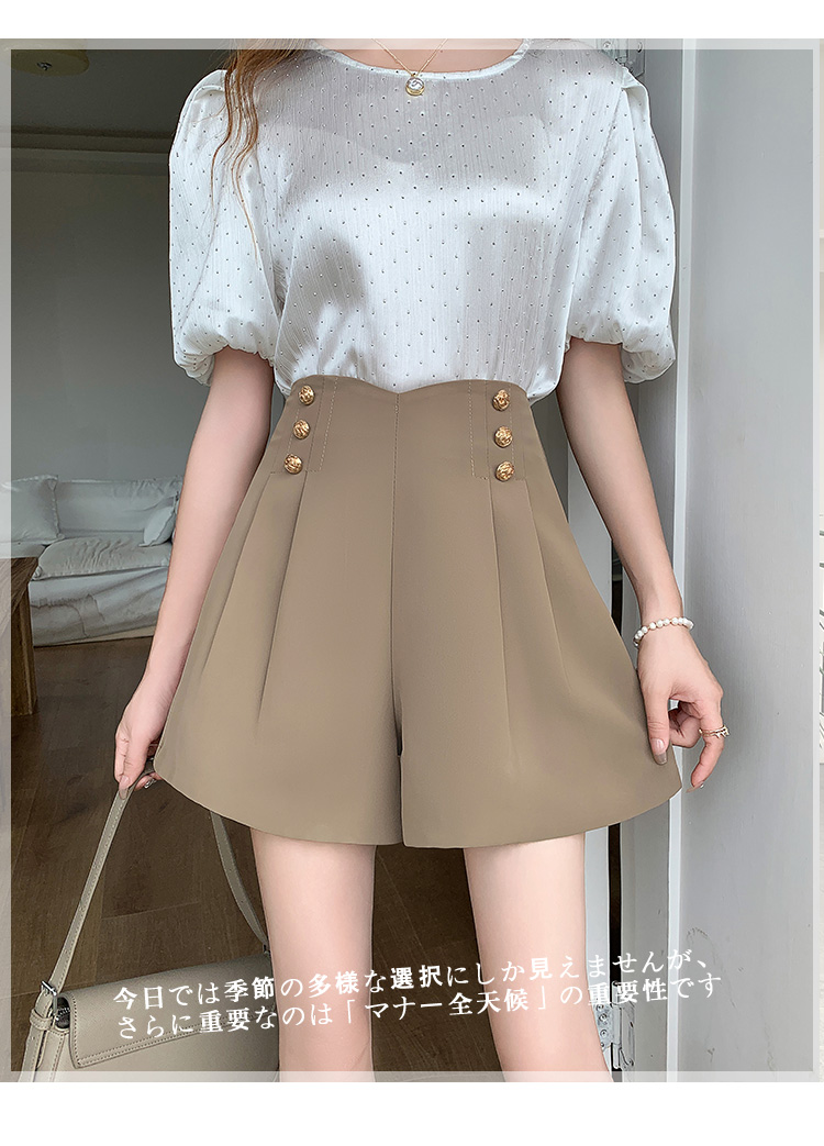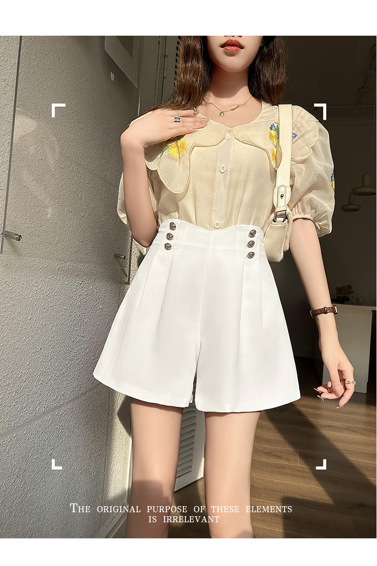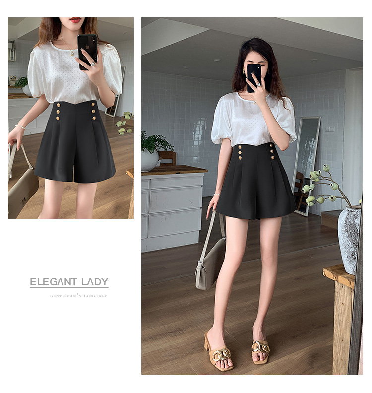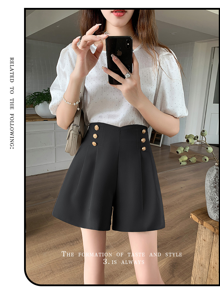 RM16274#短裤女高腰设计感双排扣2023春夏新款宽松短款直筒阔腿休闲裤