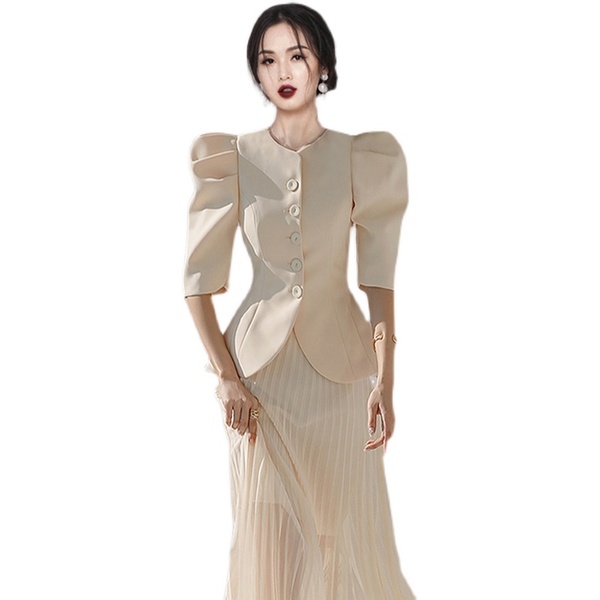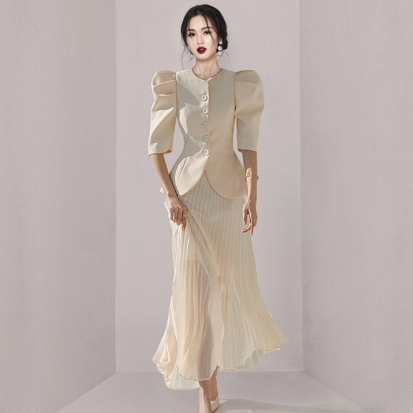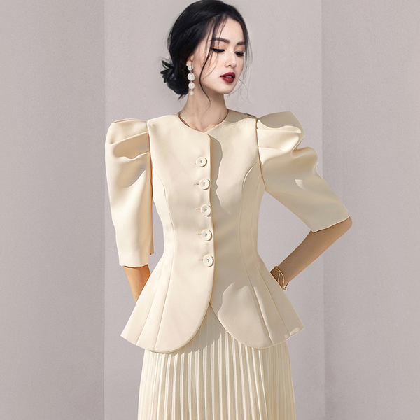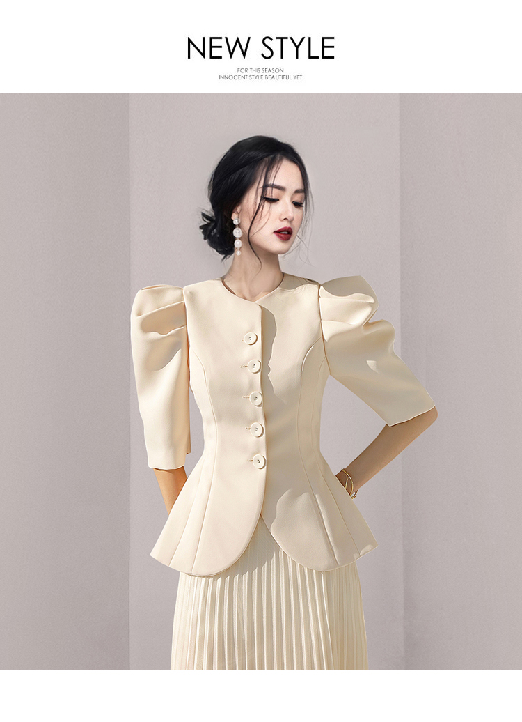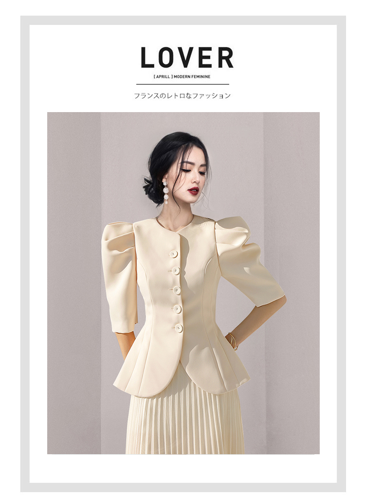 RM16443#夏装韩版高端气质修身西装外套时尚百褶裙套装女