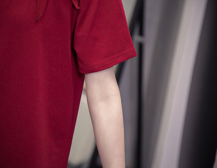 RM18651#夏季时尚休闲减龄显瘦侧开叉拉链连帽抽绳设计感连衣裙