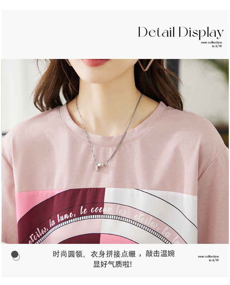 RM16514#夏季新品女式轻熟优雅大气雪纺印花拼接显瘦百搭T恤