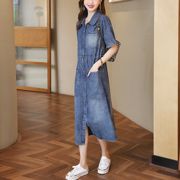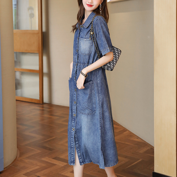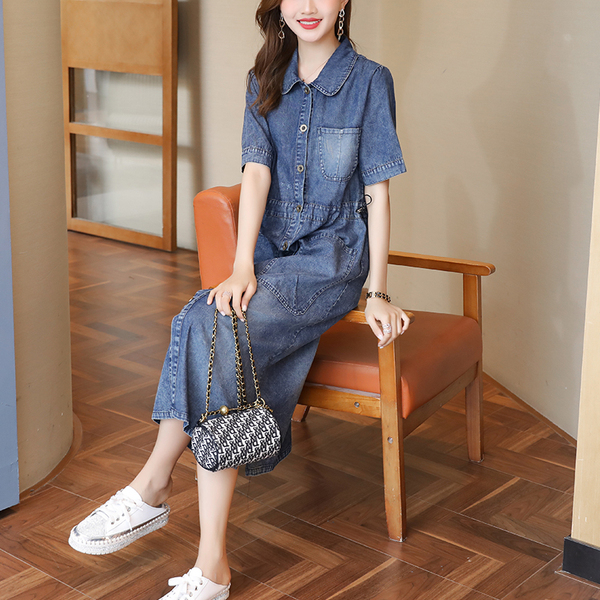 RM16574#大码欧洲站2022夏季新款胖mm复古宽松显瘦牛仔洗水连衣裙