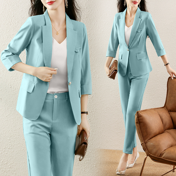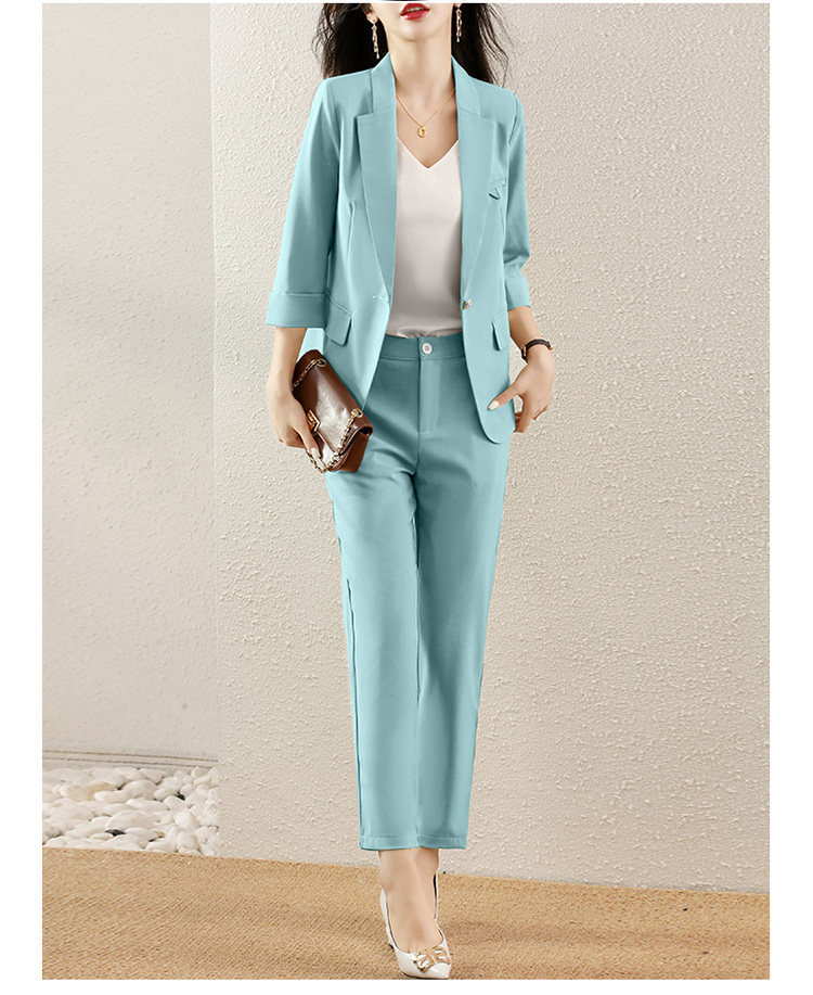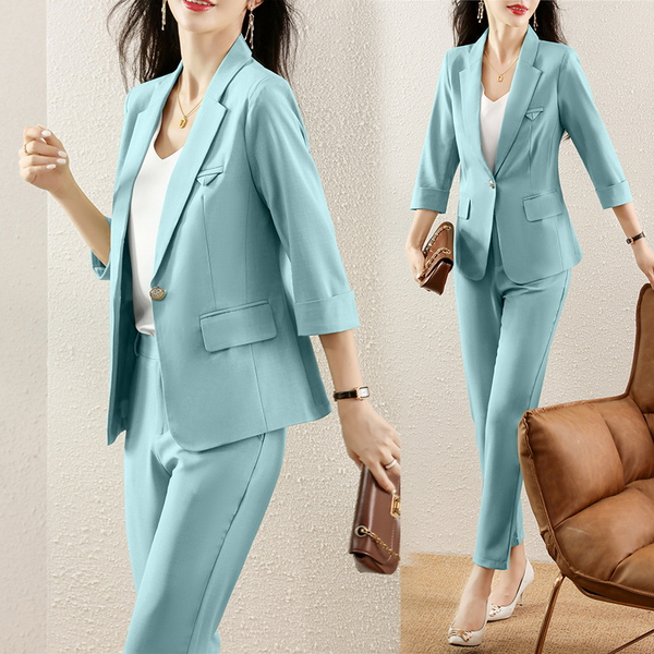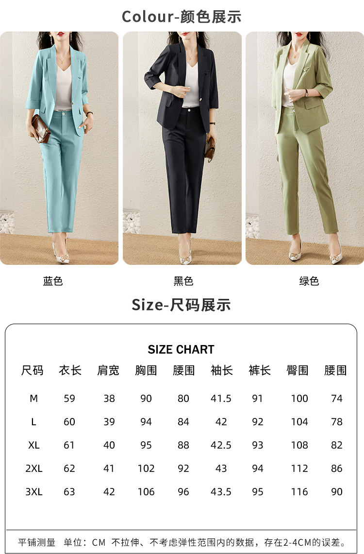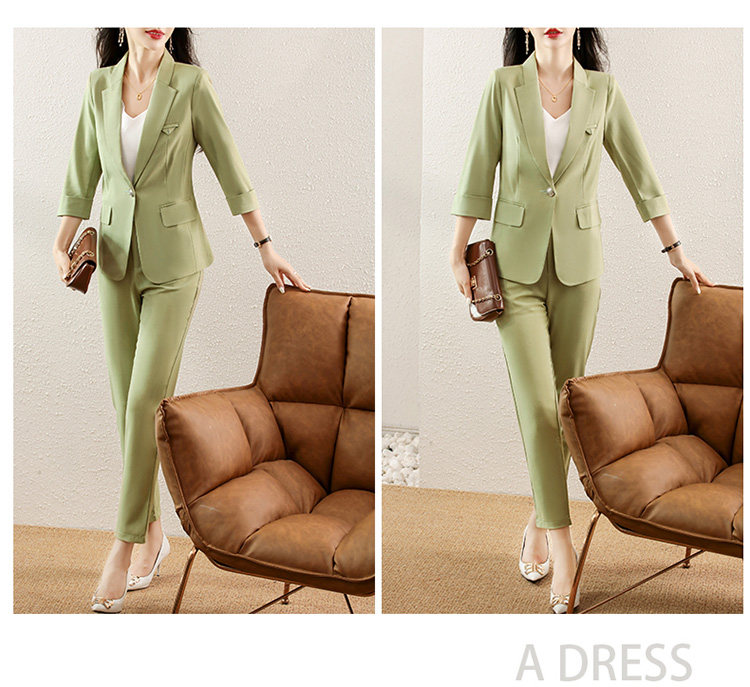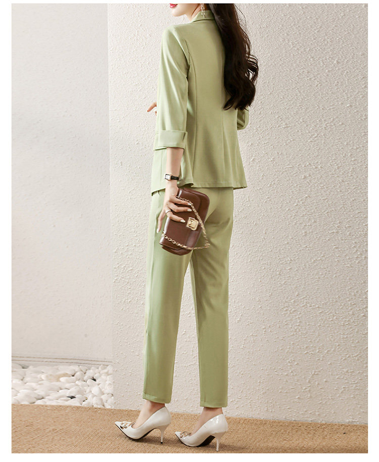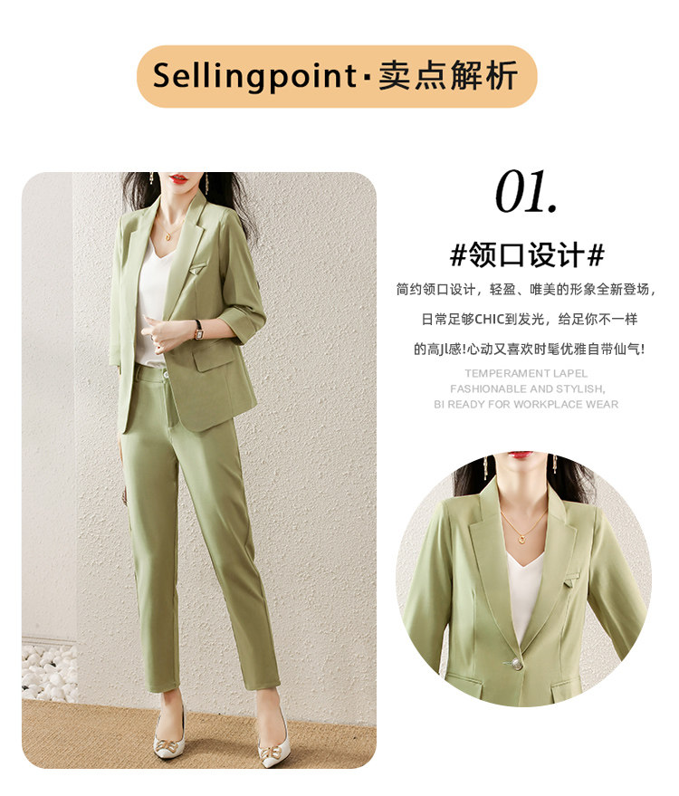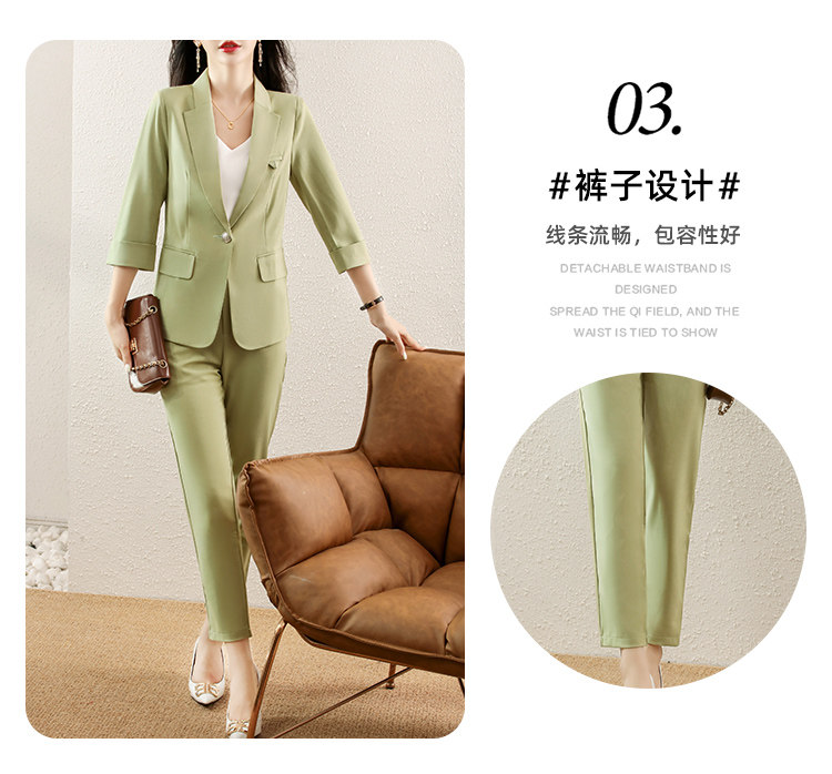 RM16636#职业套装女夏季薄款时尚气质女神范轻熟风绿色西装外套套裤工作服