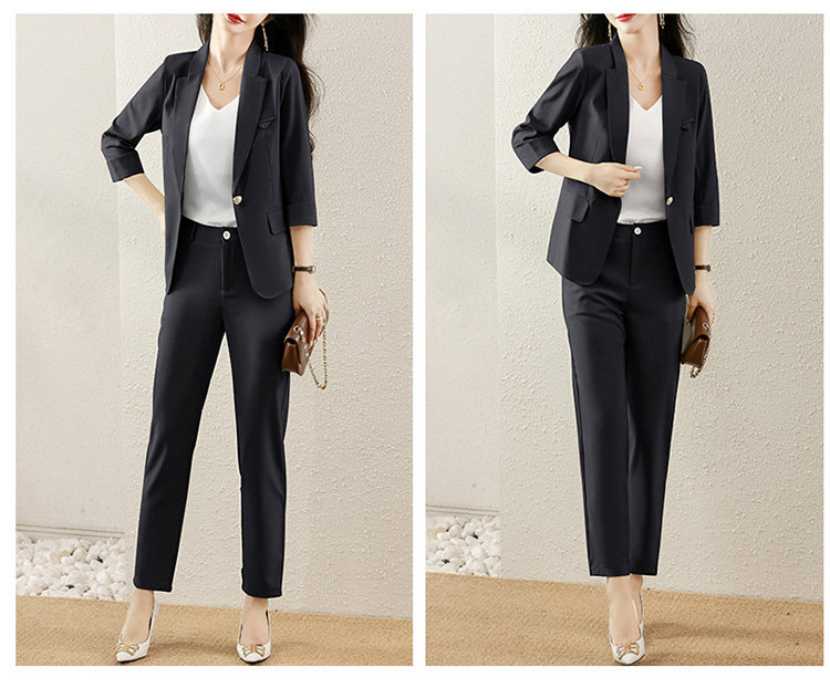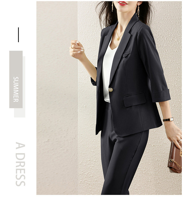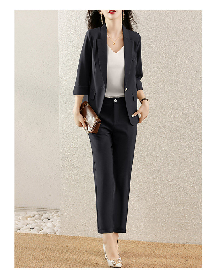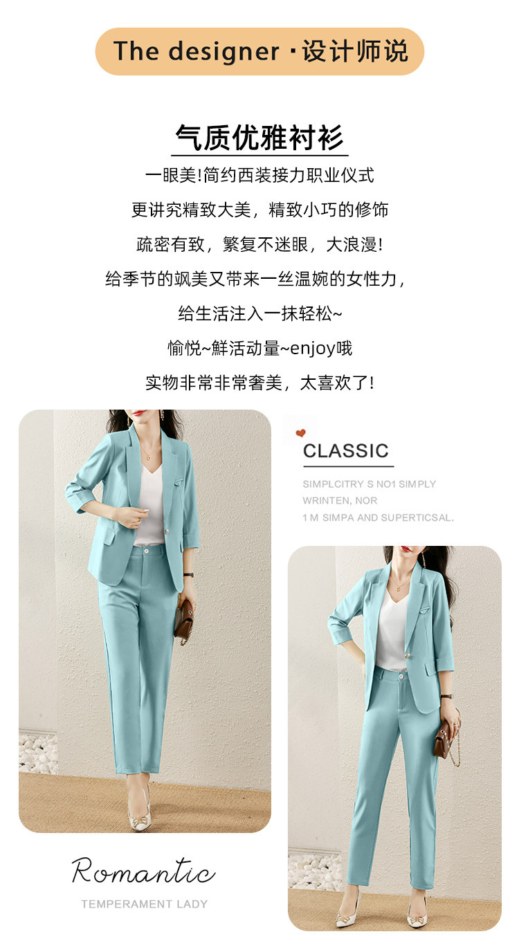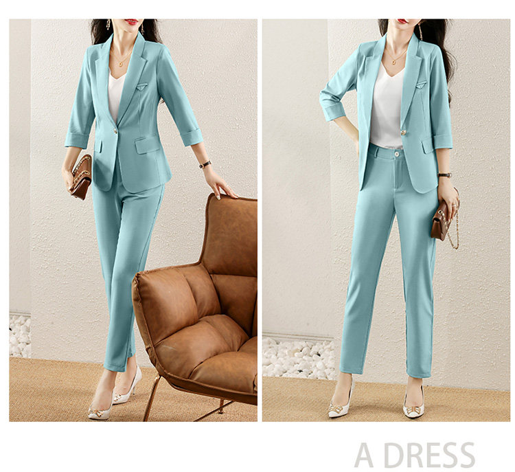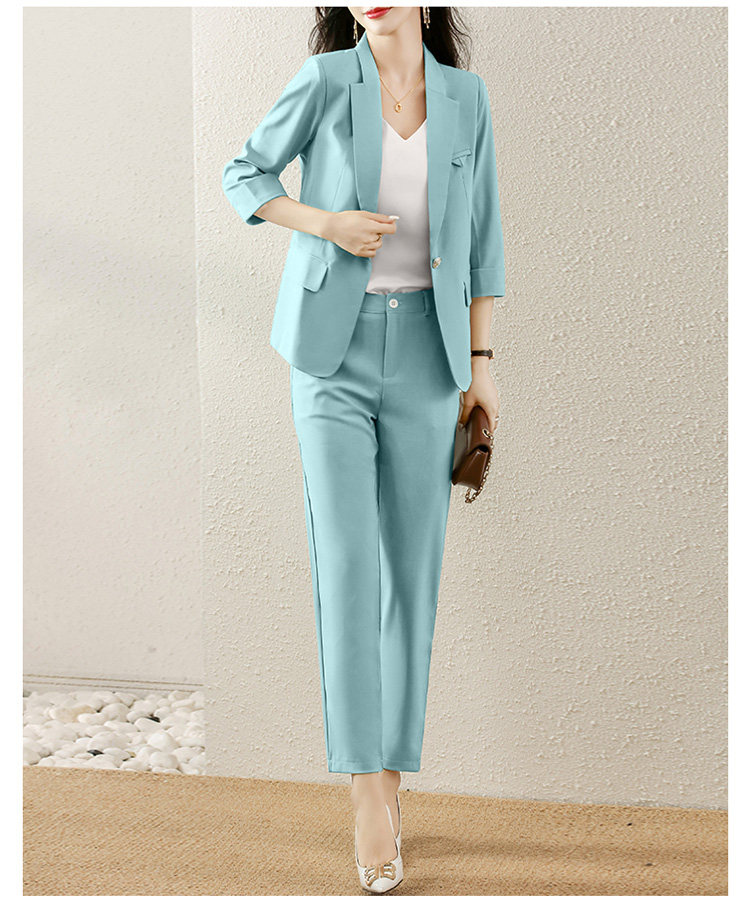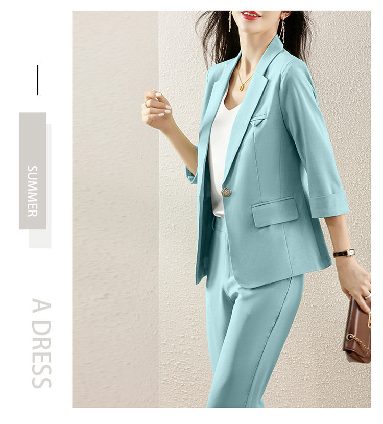RM16636#职业套装女夏季薄款时尚气质女神范轻熟风绿色西装外套套裤工作服