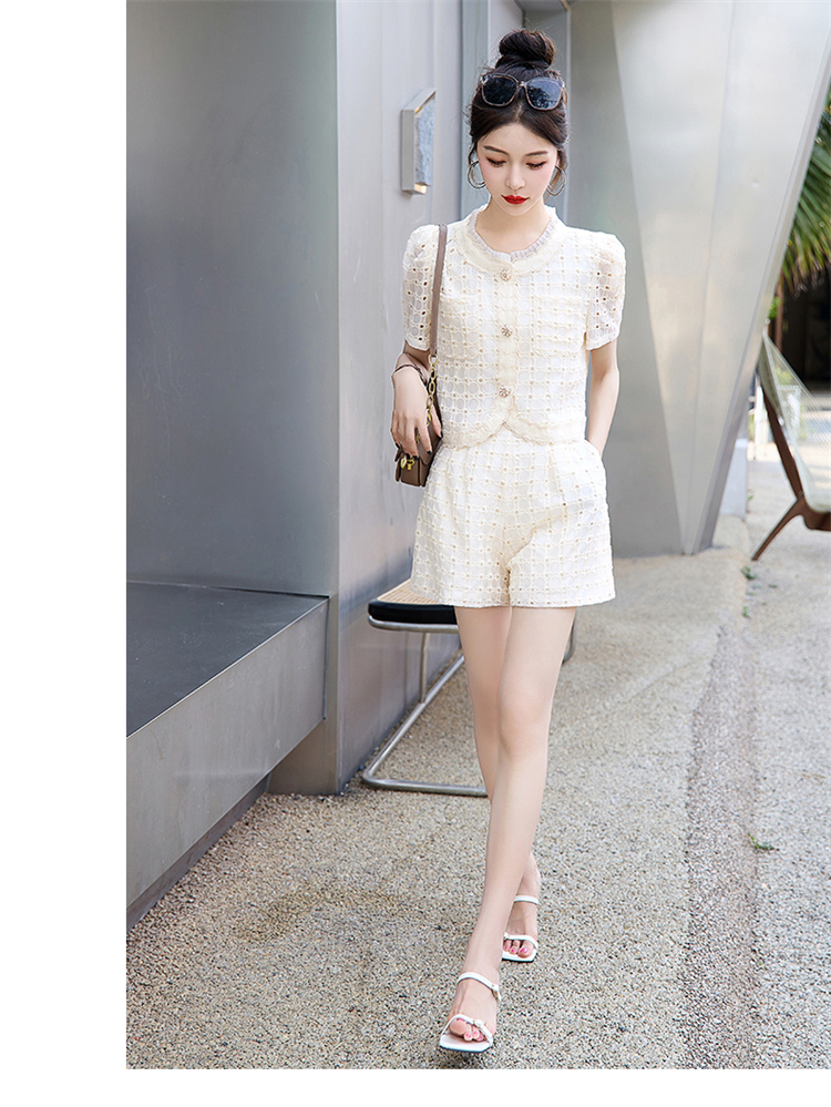 RM16784#欧洲站2023夏季新款欧货时尚精品短袖镂空上衣+短裤两件小香套装