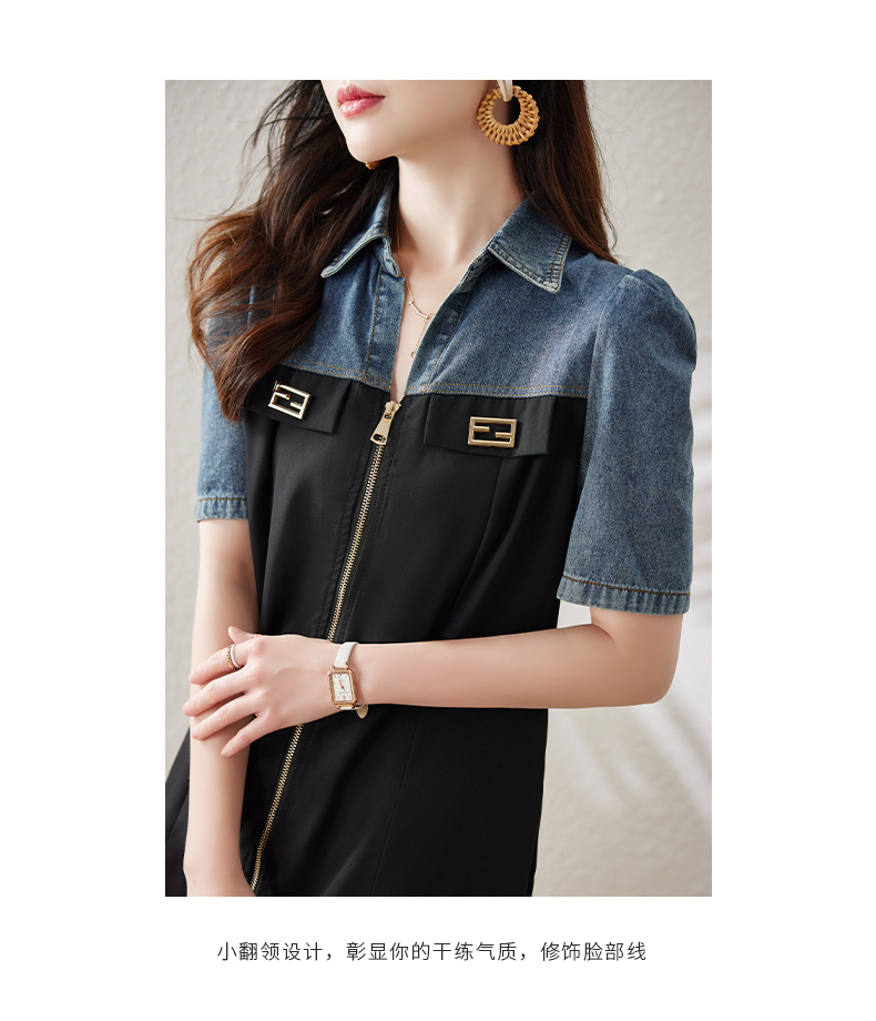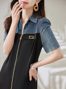 RM16925#欧洲站2023夏季新款高级感减龄轻奢休闲拼接牛仔连衣裙