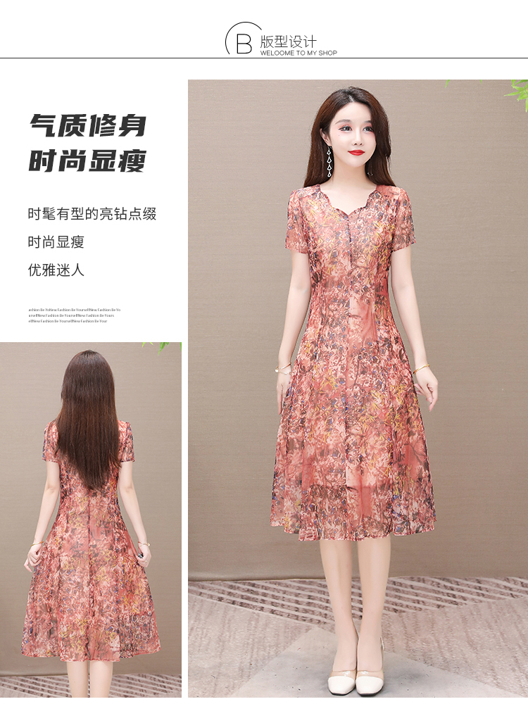 RY1640#蓝色夏季短袖连衣裙大码修身显瘦气质中长裙款