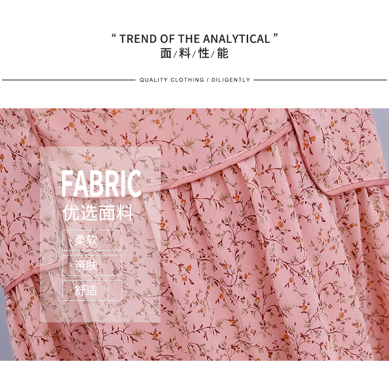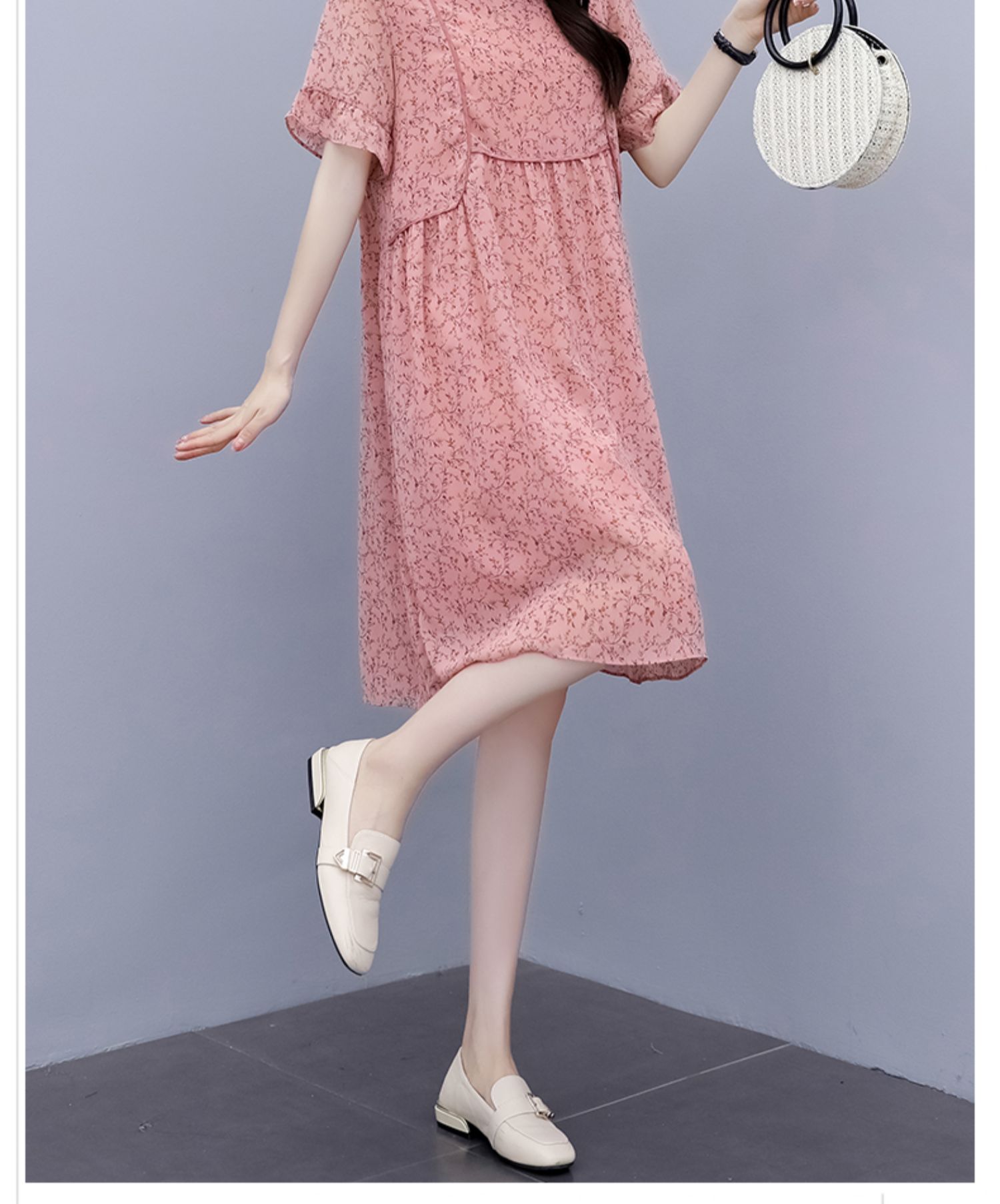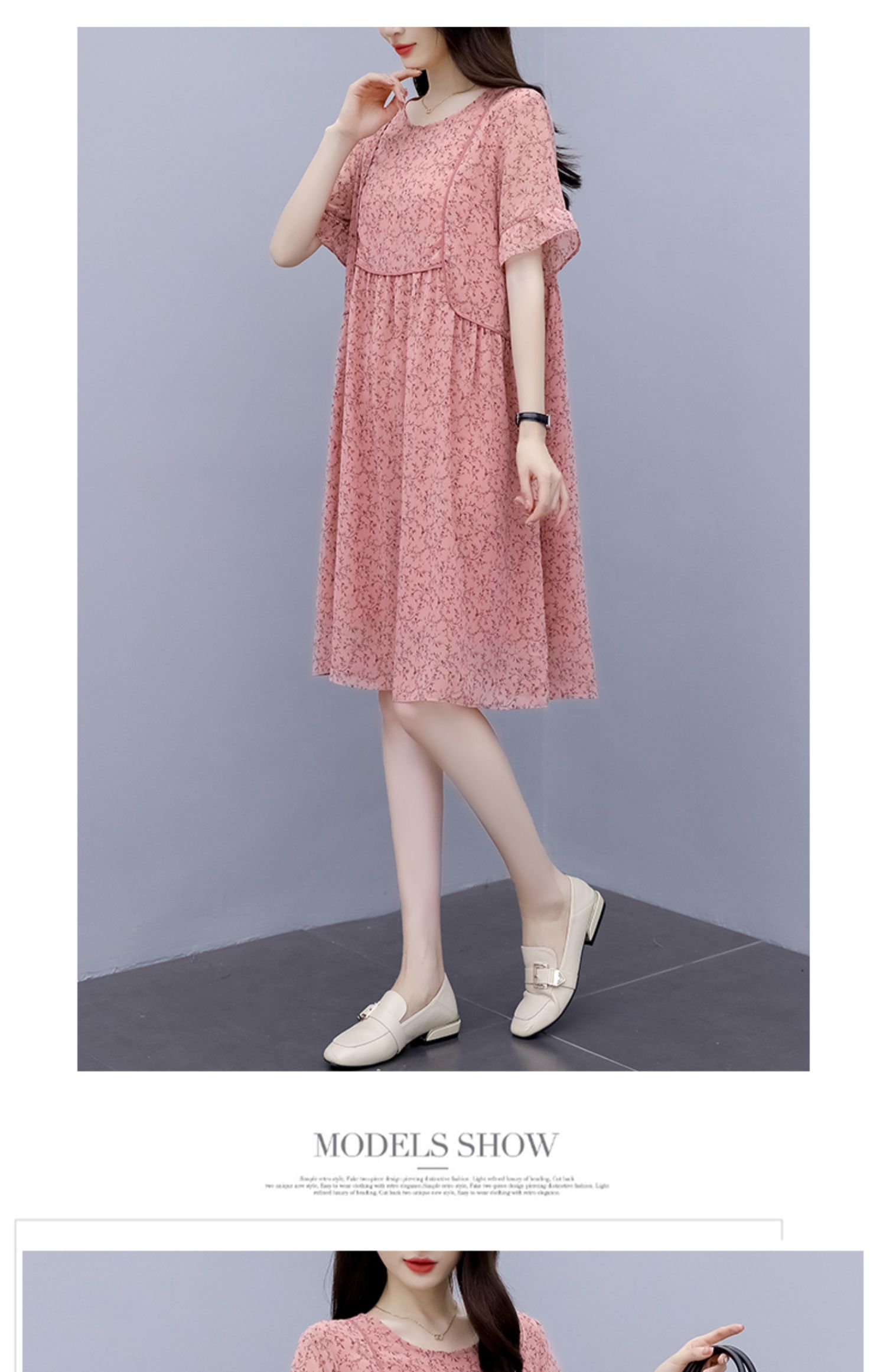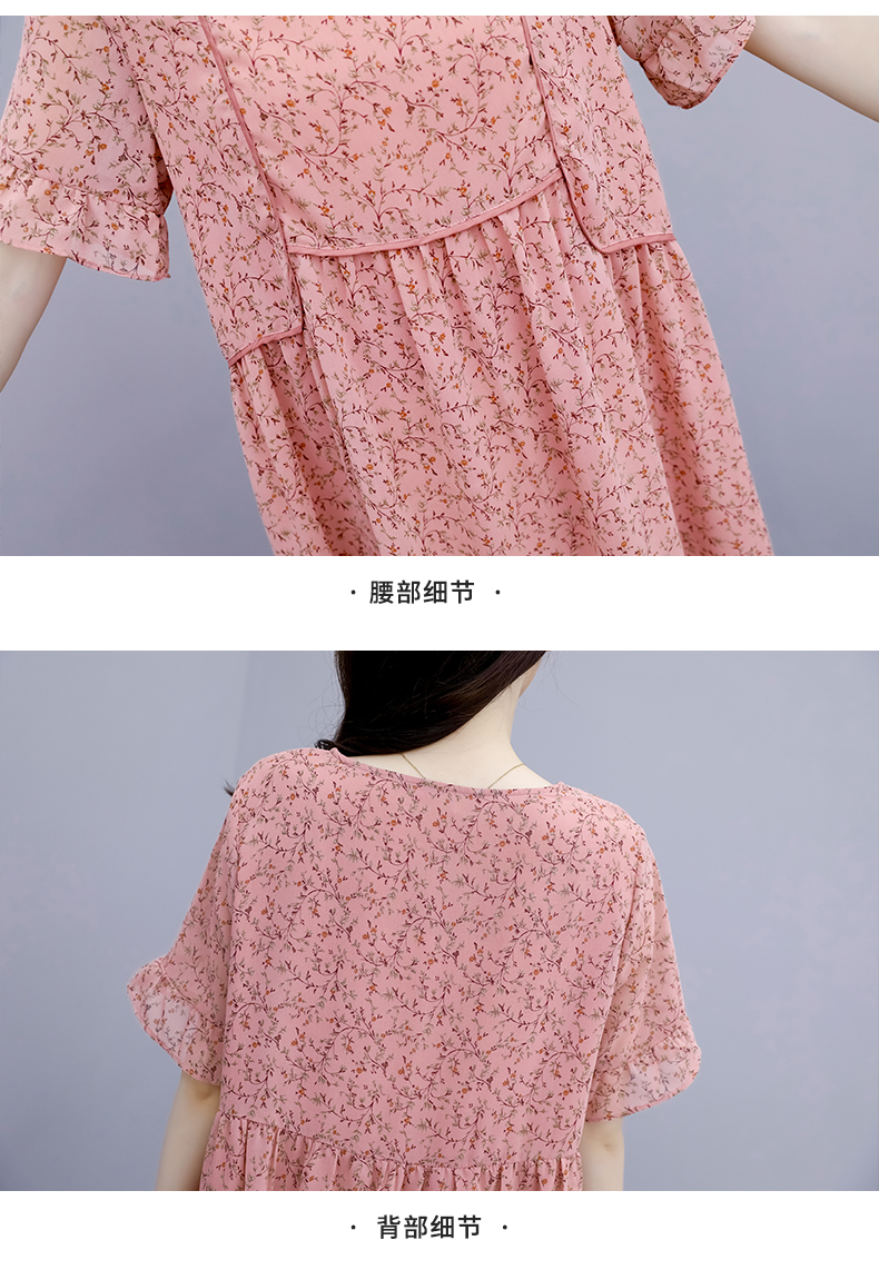 RM17041#夏季新款中长款宽松显瘦大码遮肚子雪纺印花a字连衣裙子
