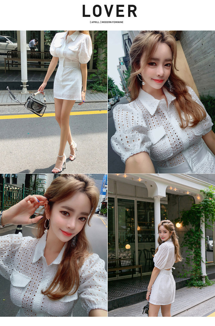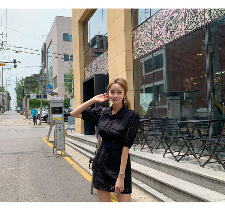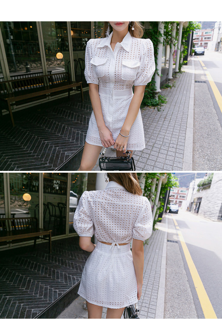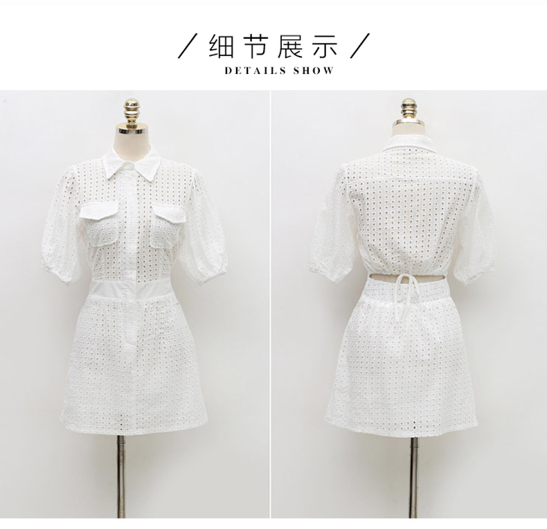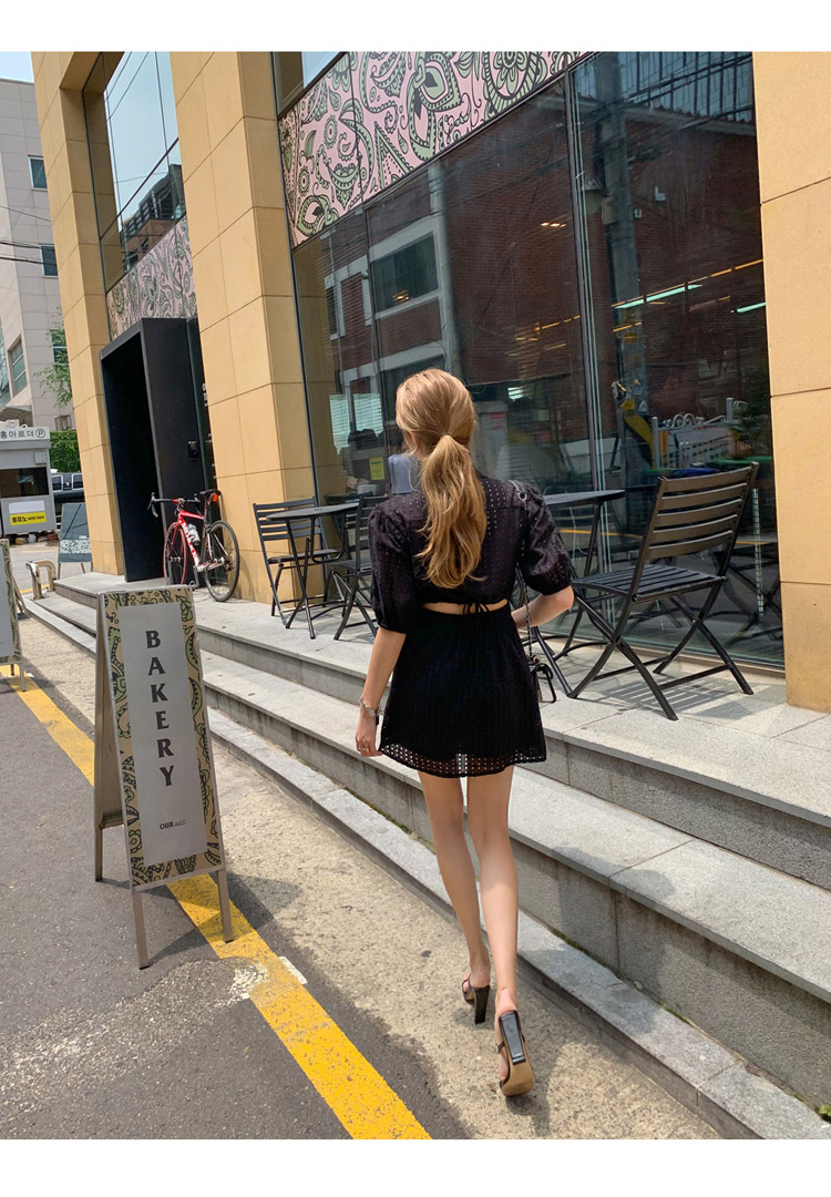 RM17075#镂空连衣裙女韩国2023夏季新款流行小个子设计感收腰气质a字短裙