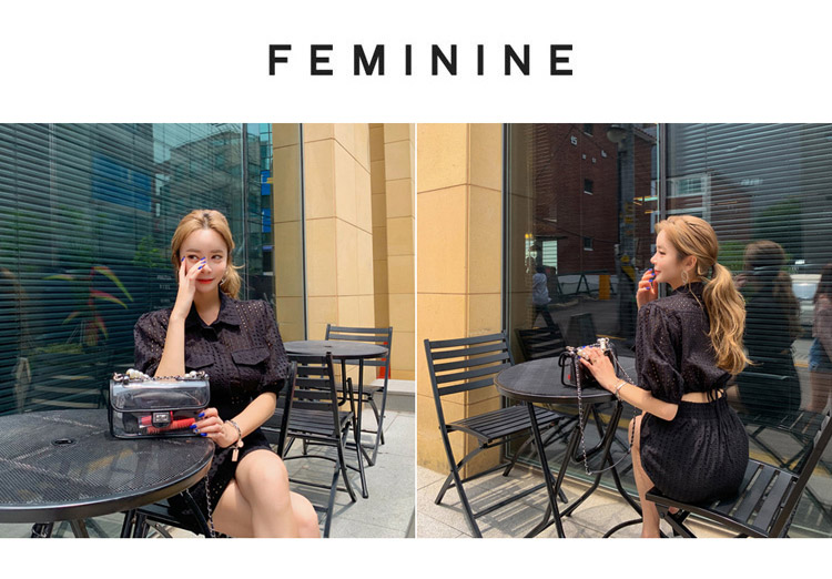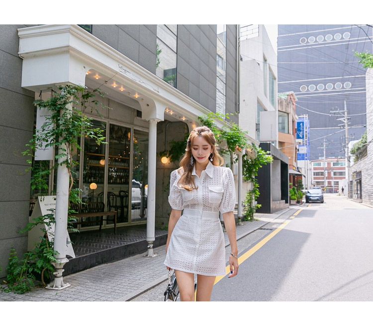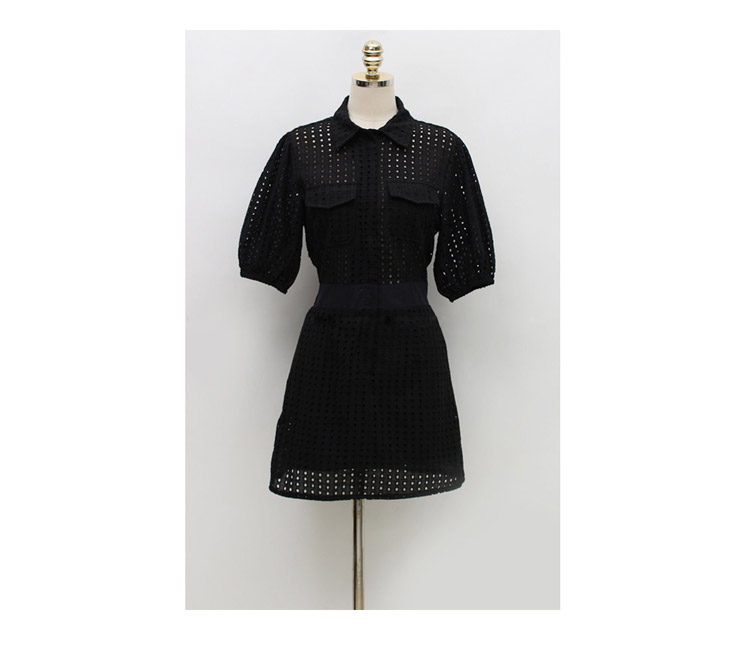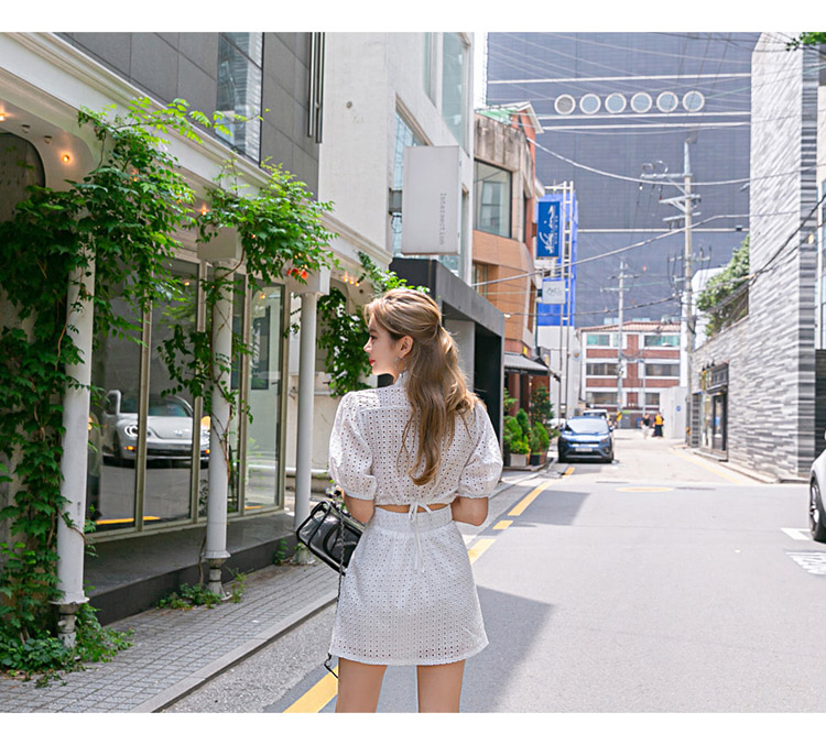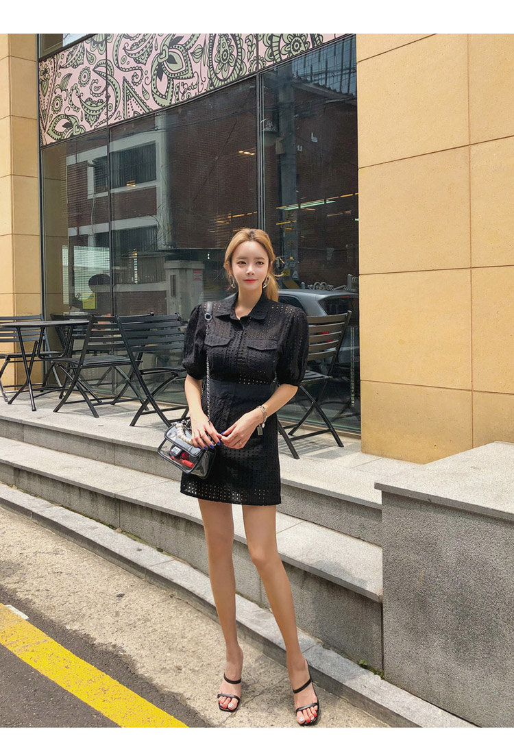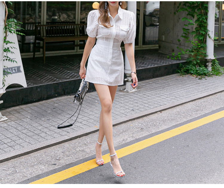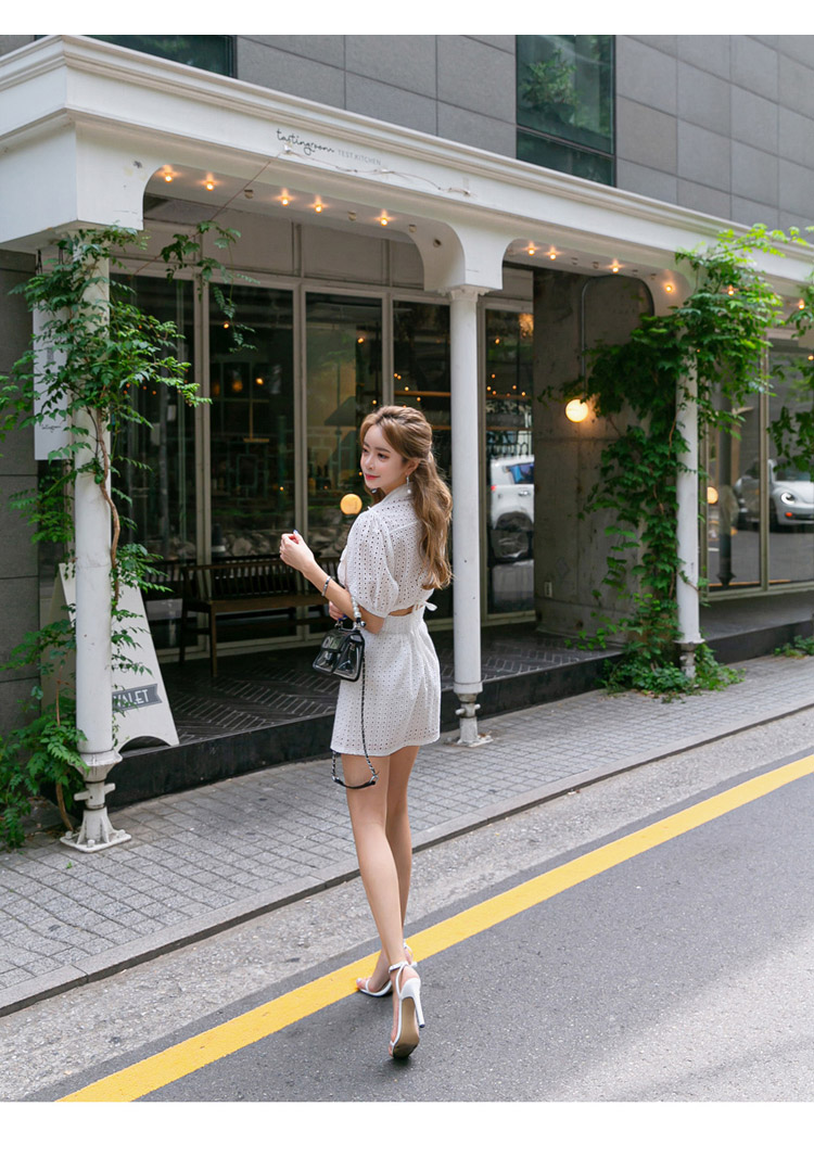 RM17075#镂空连衣裙女韩国2023夏季新款流行小个子设计感收腰气质a字短裙