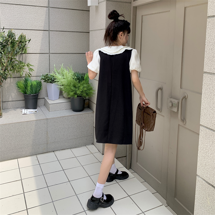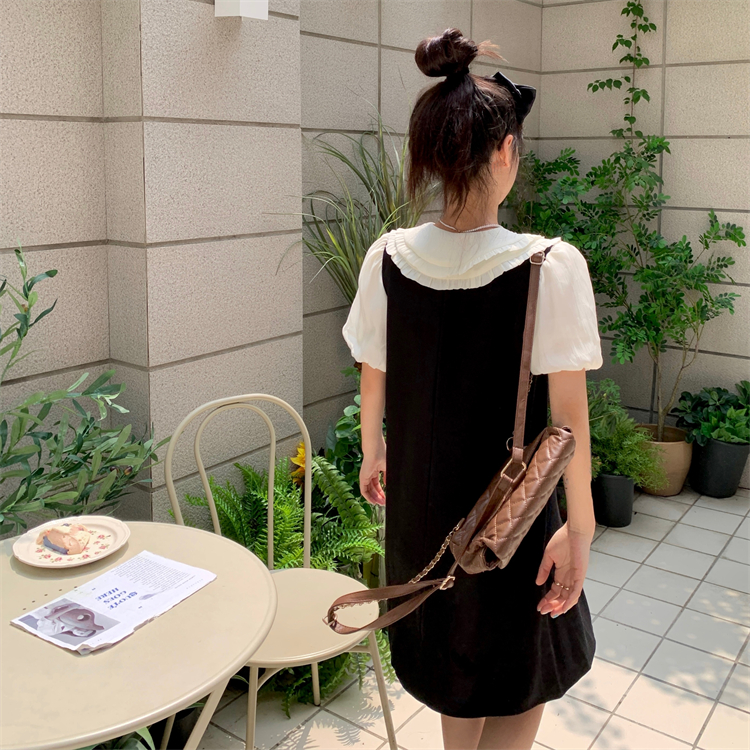 RM17078#双层娃娃领假两件连衣裙女2023夏季胖mm减龄泡泡袖设计感小众裙子