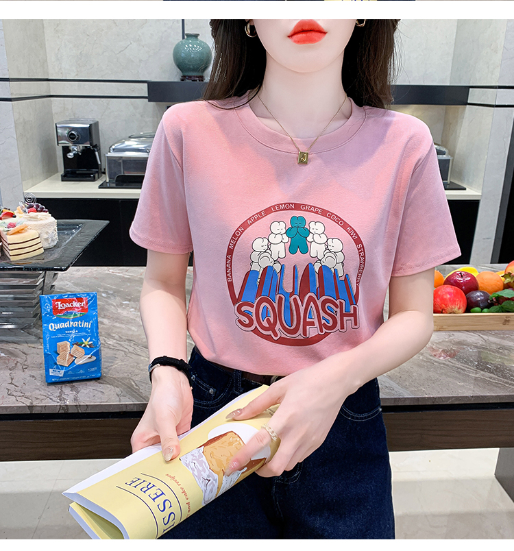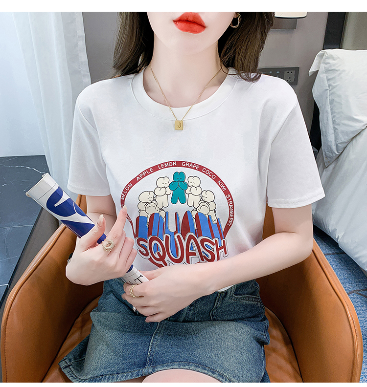 RM17120#短袖T恤女夏季套头休闲圆领卡通印花别致洋气上衣