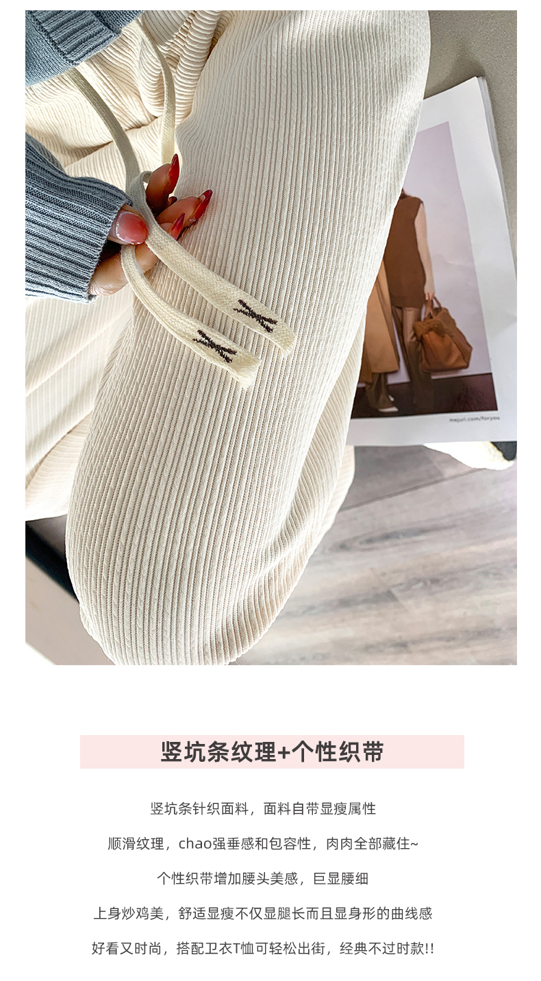 RM17235#垂感宽松粉色针织窄版阔腿裤女装休闲裤抽绳直筒裤