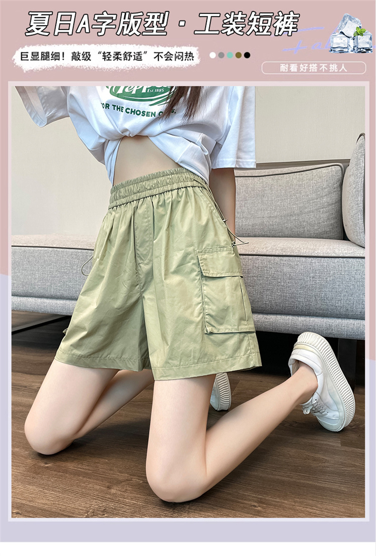 RM17729#工装短裤女2023夏季薄款韩版高腰小个子休闲裤宽松显瘦a字阔腿裤