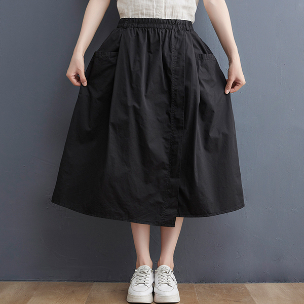 RM17789#夏装2023新款女韩版宽松大码口袋松紧显瘦遮肉不规则半身裙