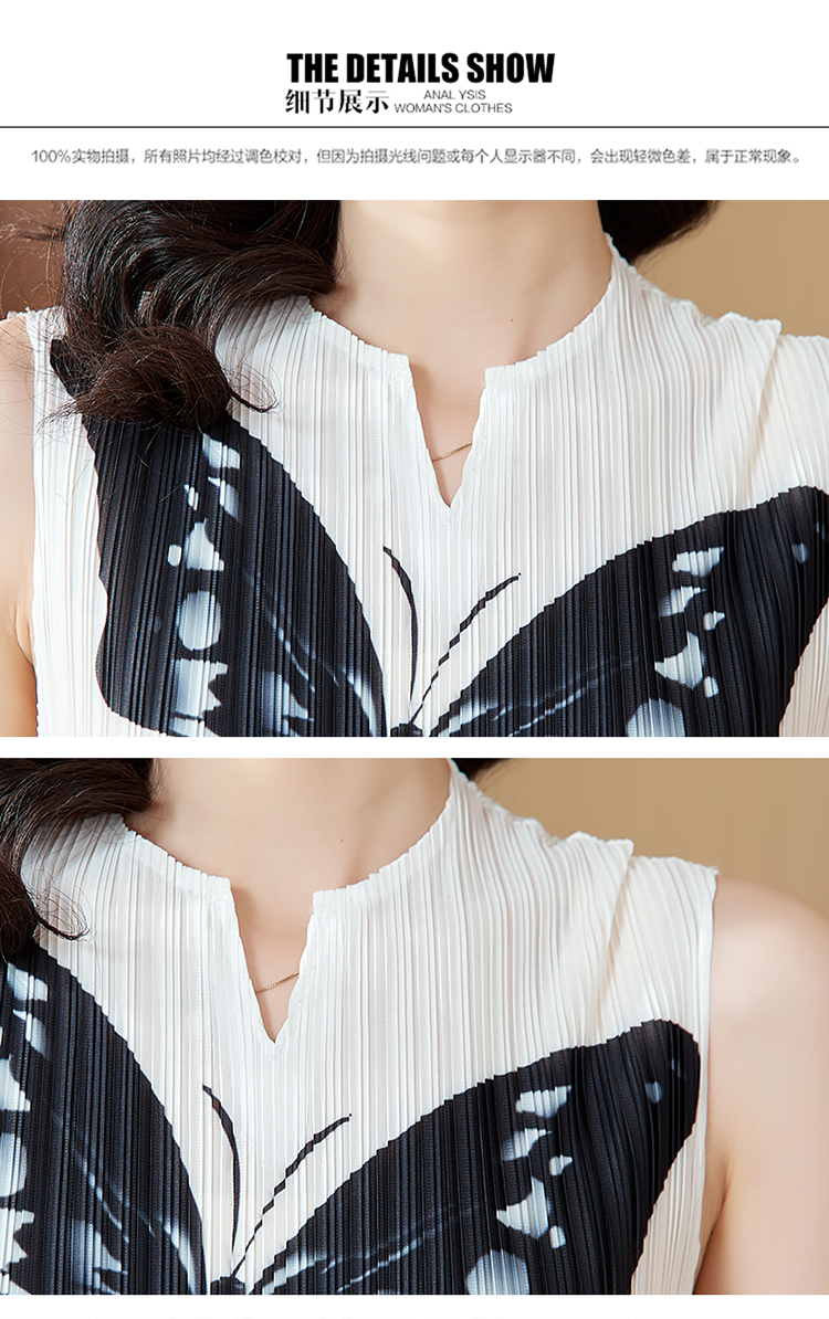 RM17804#外贸三宅女装裙子2023年夏季新款减龄褶皱蝴蝶印花无袖显瘦连衣裙