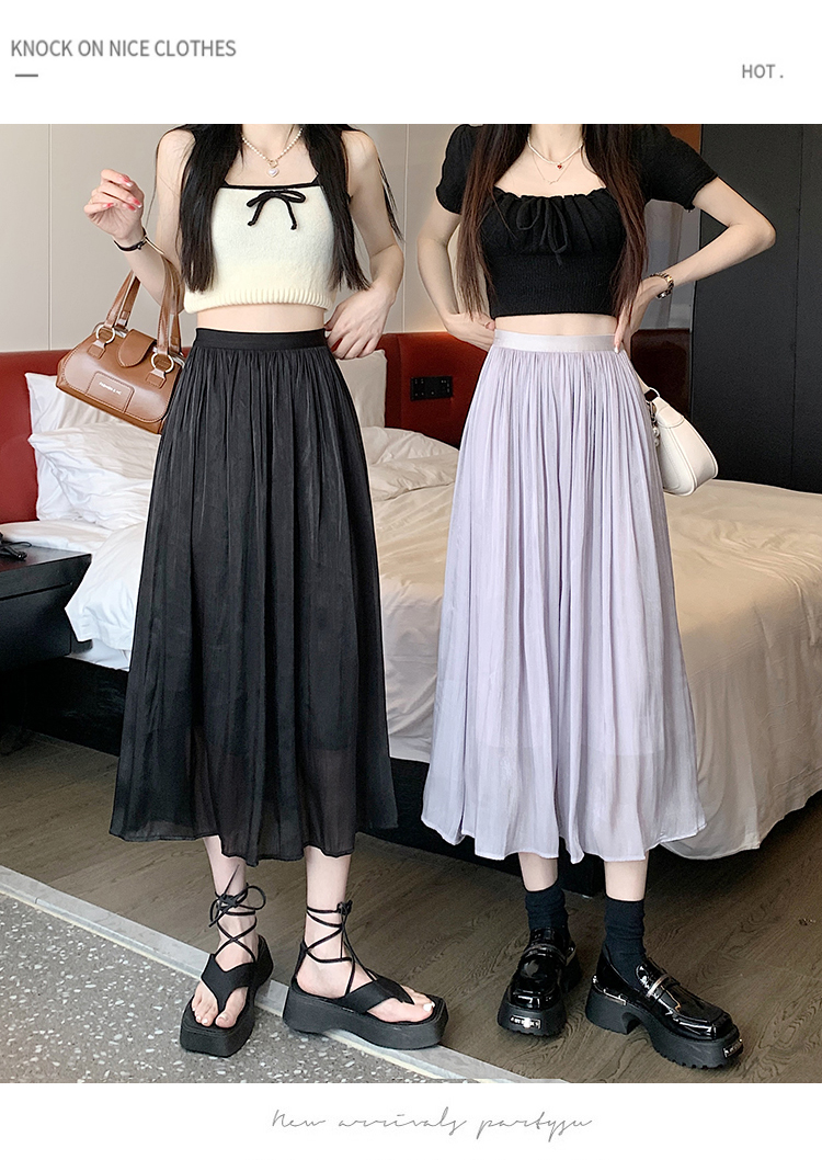 RM18029#高级感流光纱裙女2023夏季珠光裙子气质杨柳皱夏网纱半身裙子