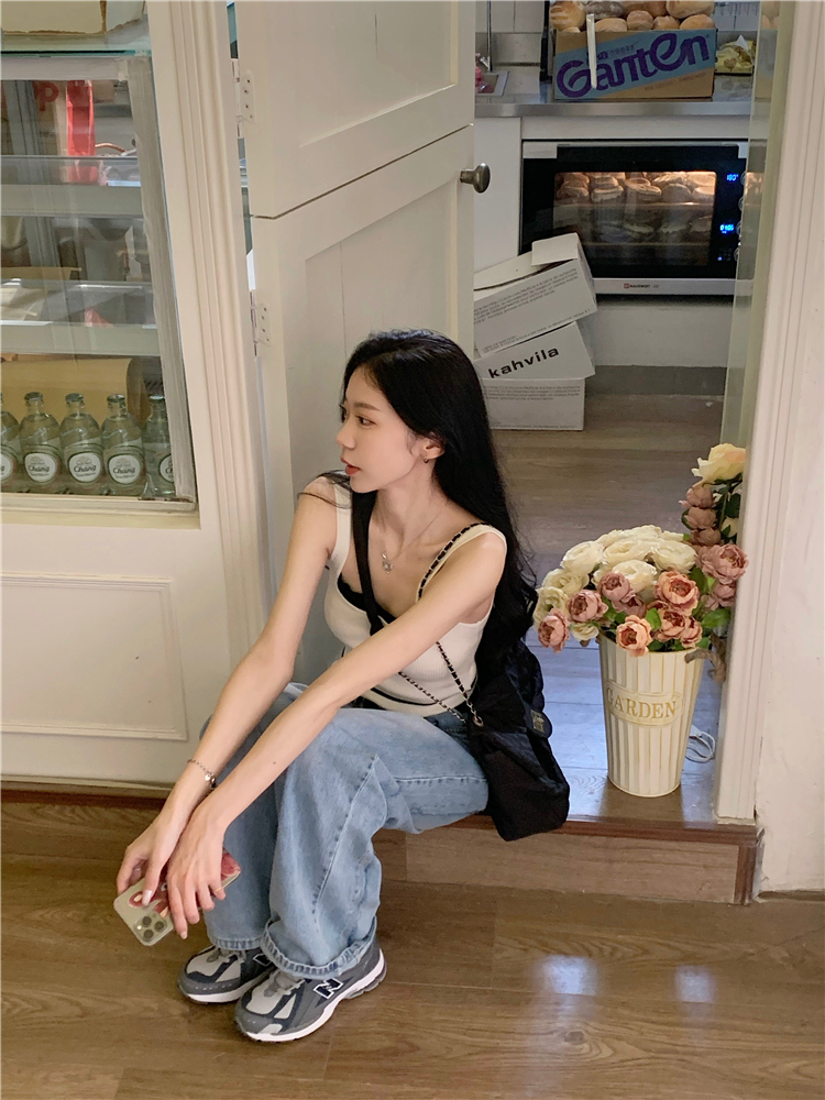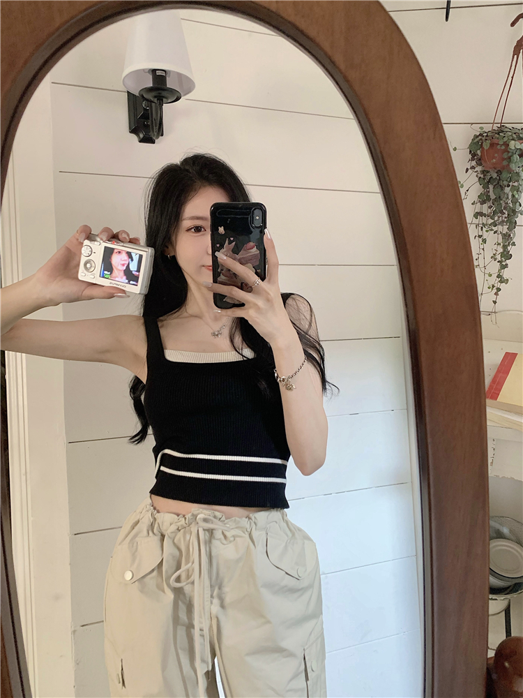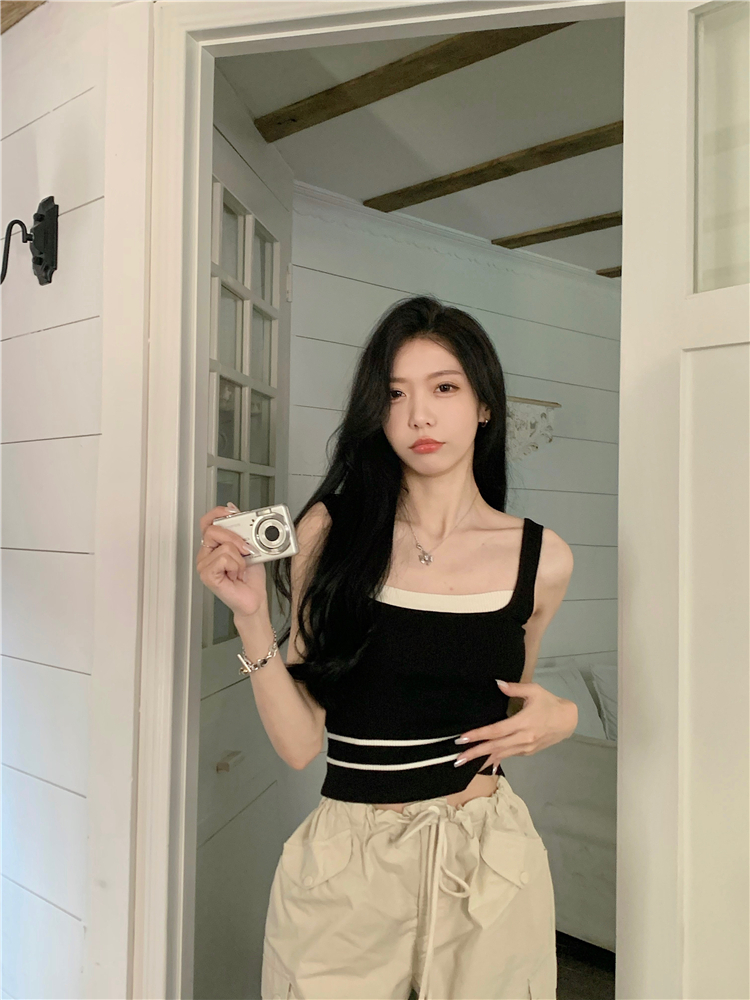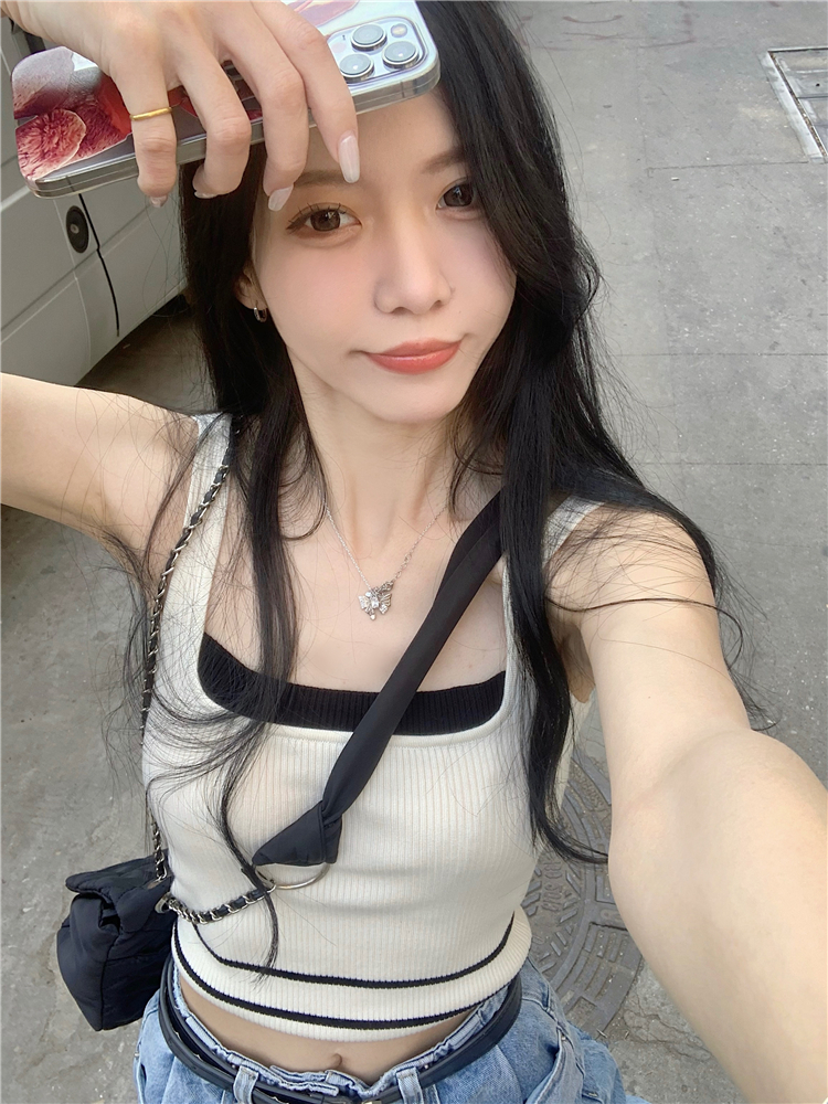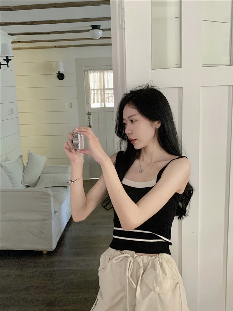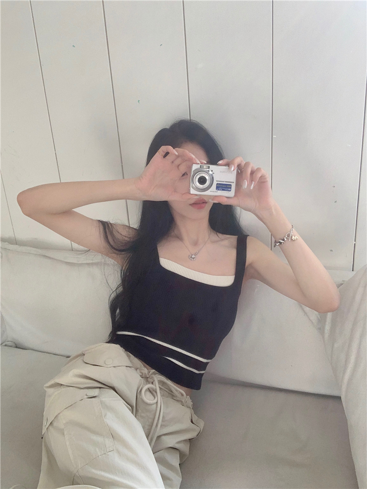 RM18066#冰丝假两件针织吊带背心女内搭夏季新款修身短款无袖辣妹上衣