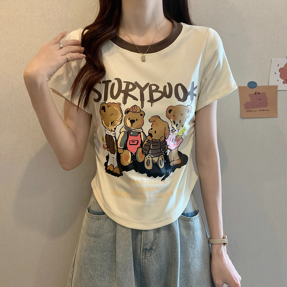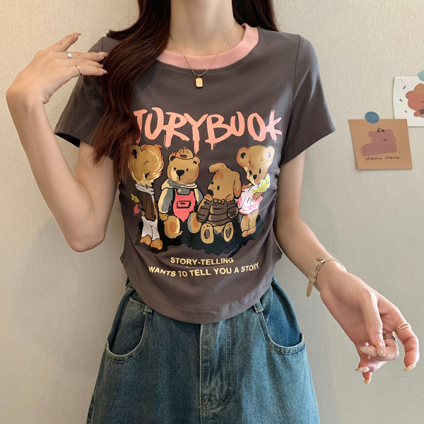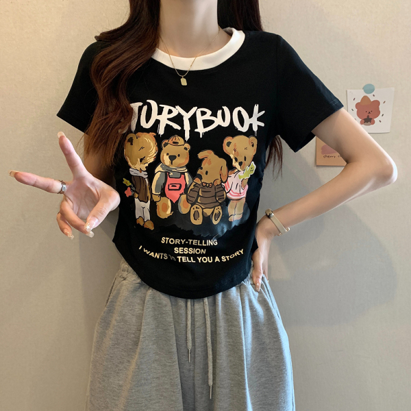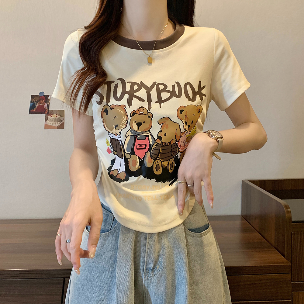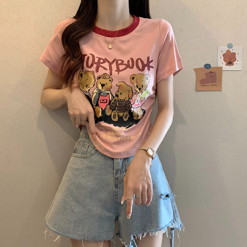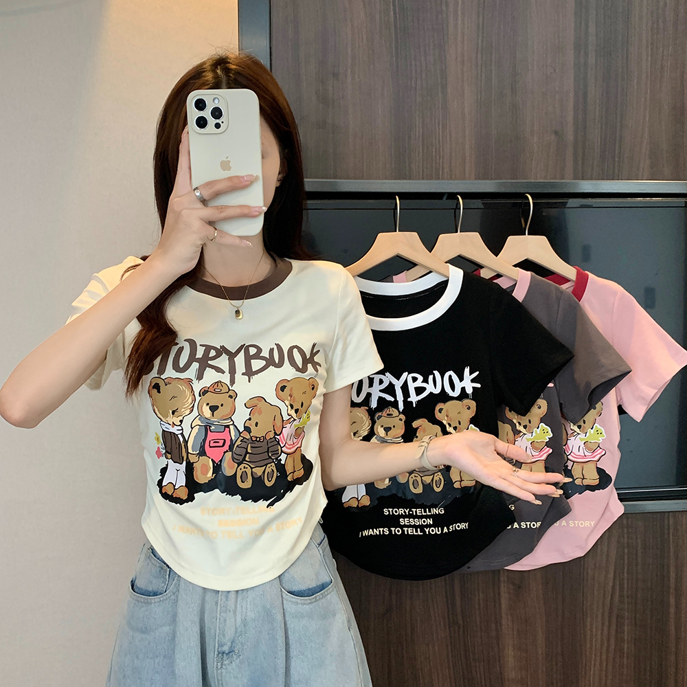 RM18069#卡通印花减龄大码女装正肩短袖t恤女夏季胖MM显瘦遮肉不规则上衣