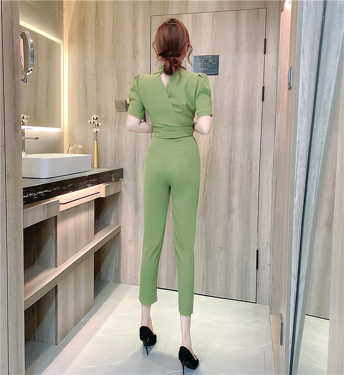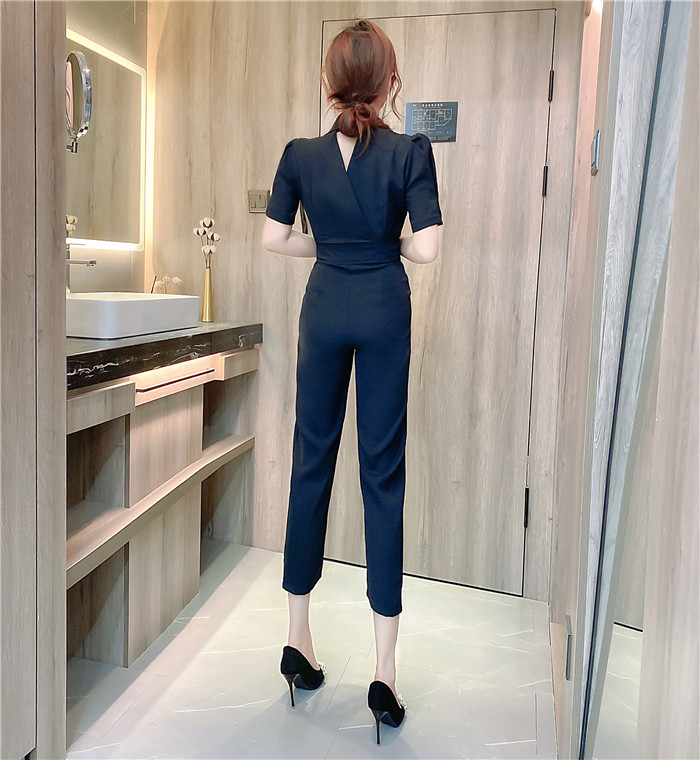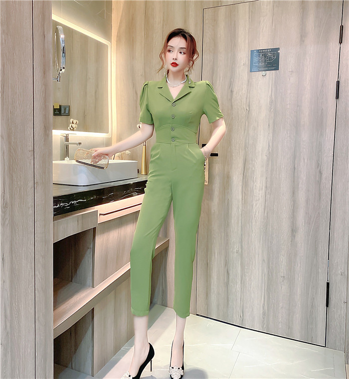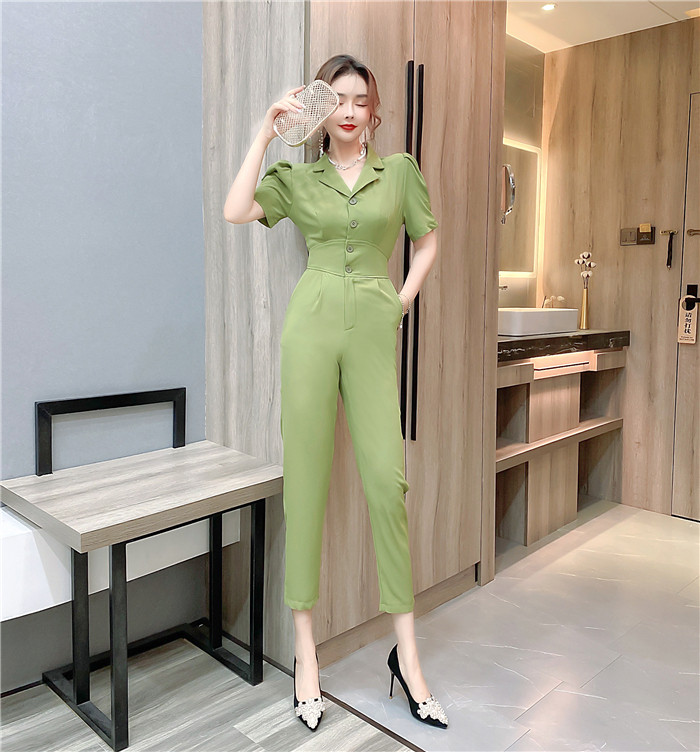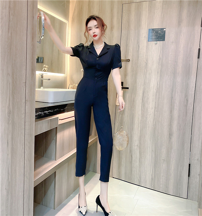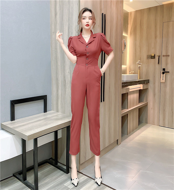 RM18203#夏时髦炸街气质洋气单排扣翻领显瘦修身连体裤长裤