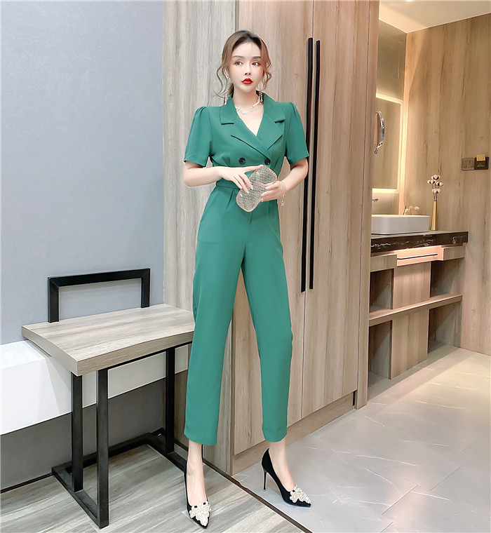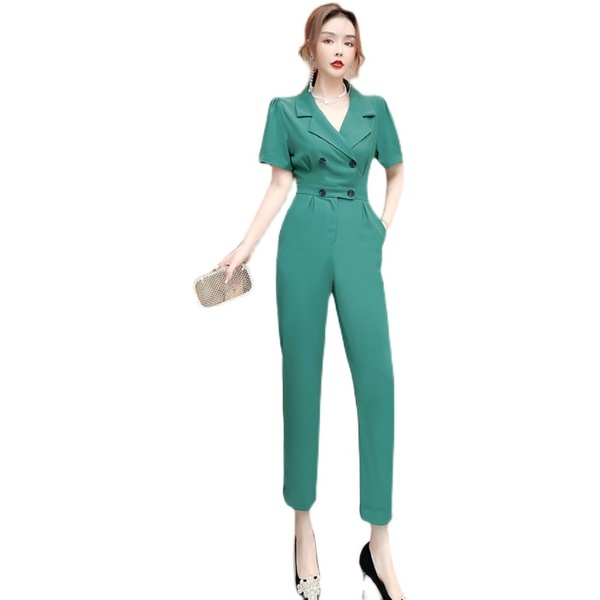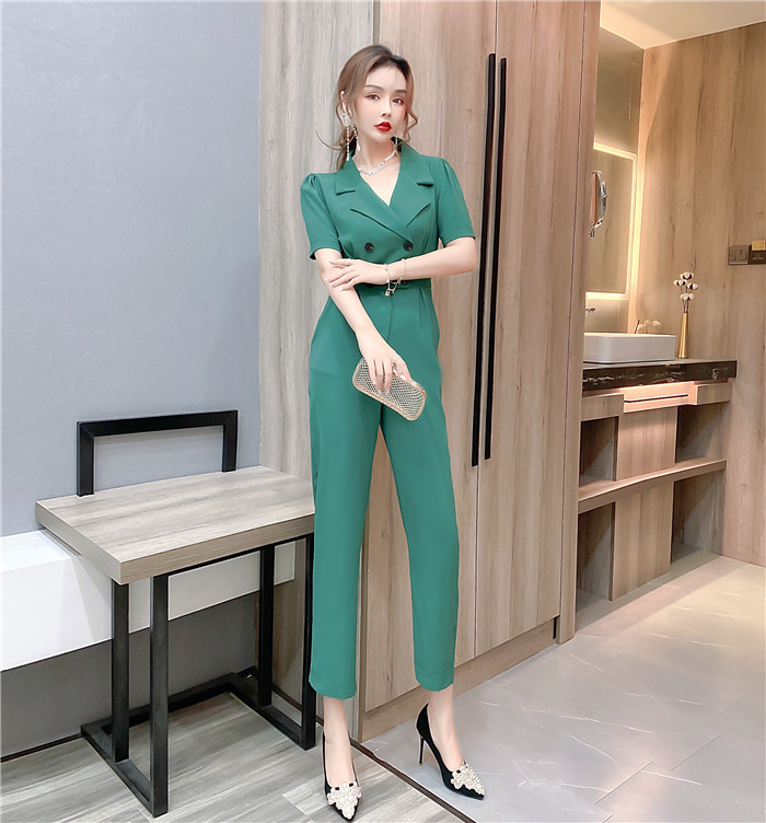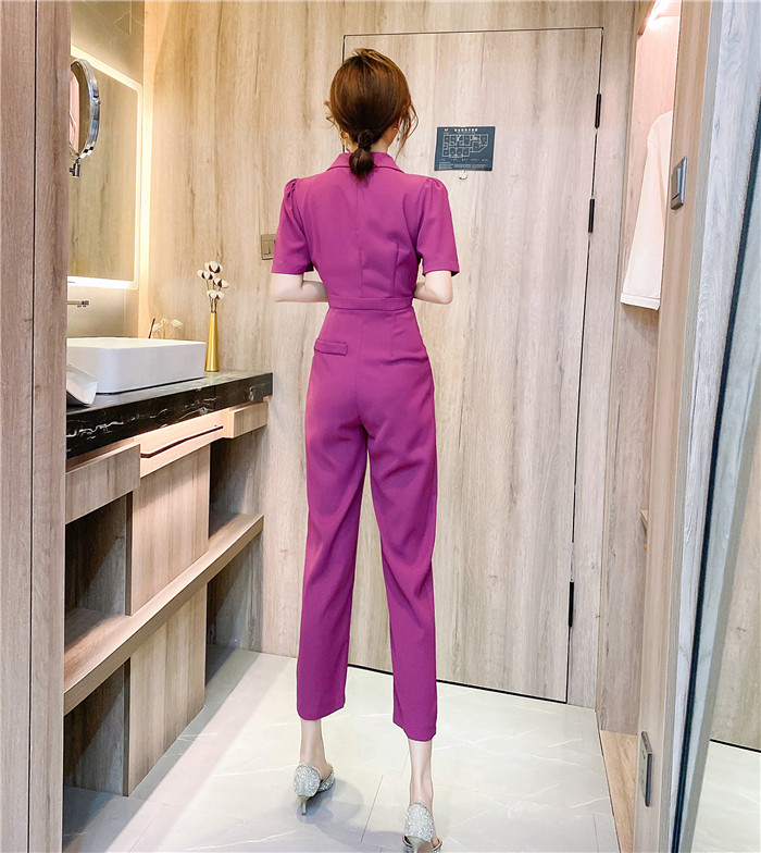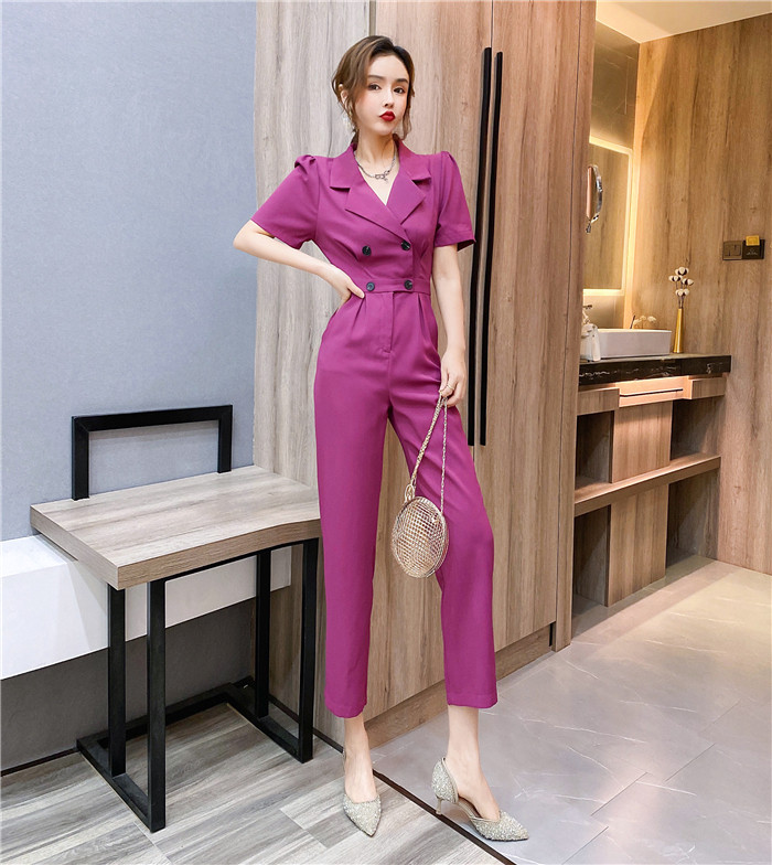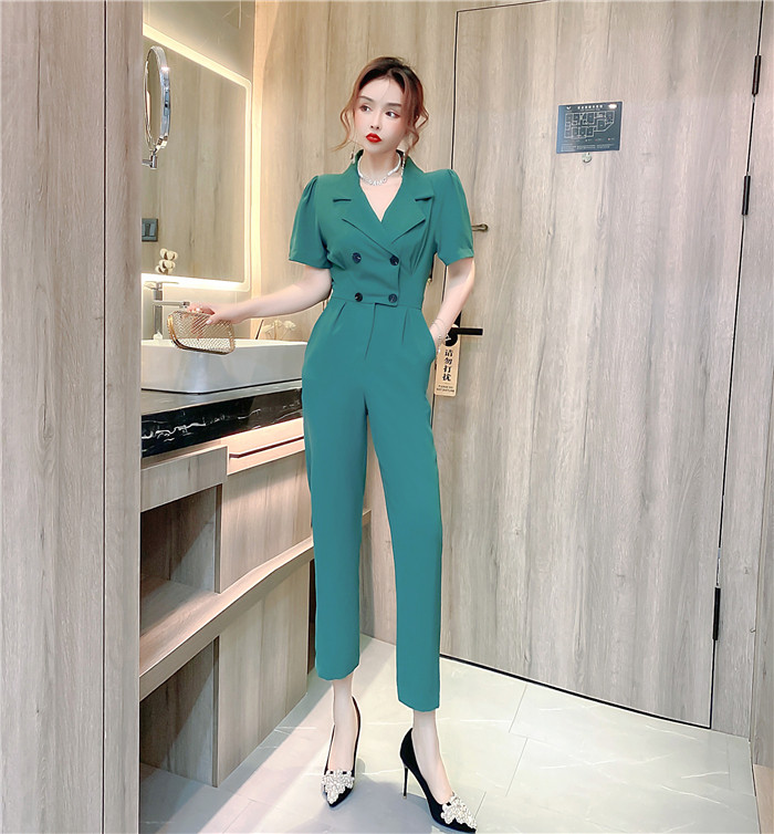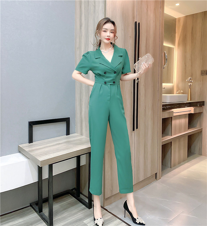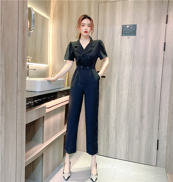 RM18204#夏季时髦洋气双排扣翻领显瘦收腰女神范连体裤长裤